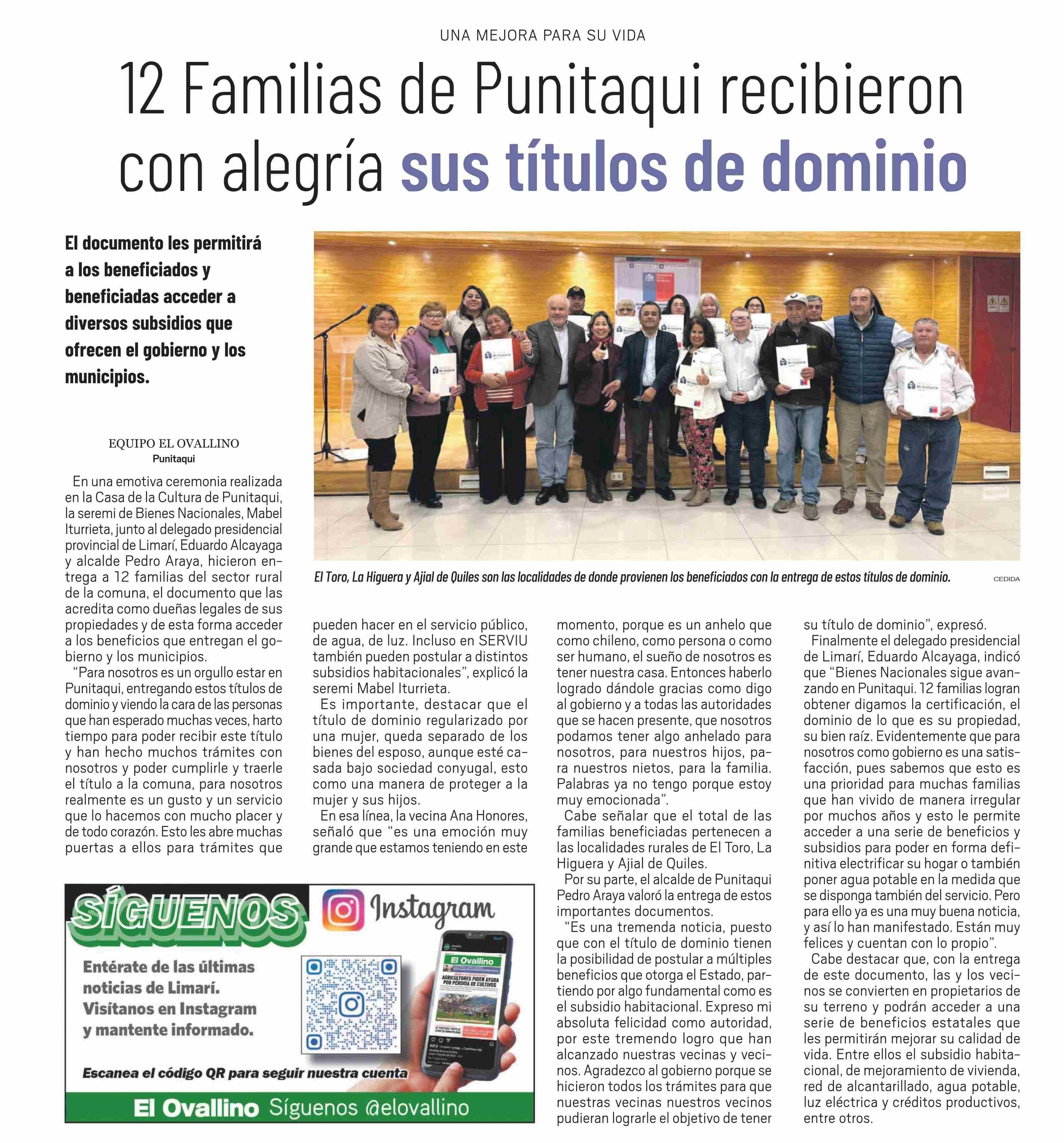 12 Familias de Punitaqui recibieron con alegría sus títulos de dominio 06-06-2025 El Ovallino |