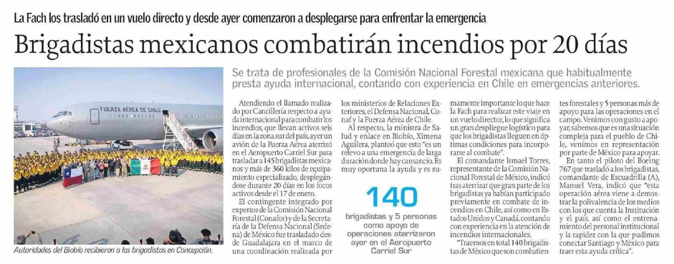 Brigadistas mexicanos combatirán incendios por 20 días 23-01-2026 El Sur |