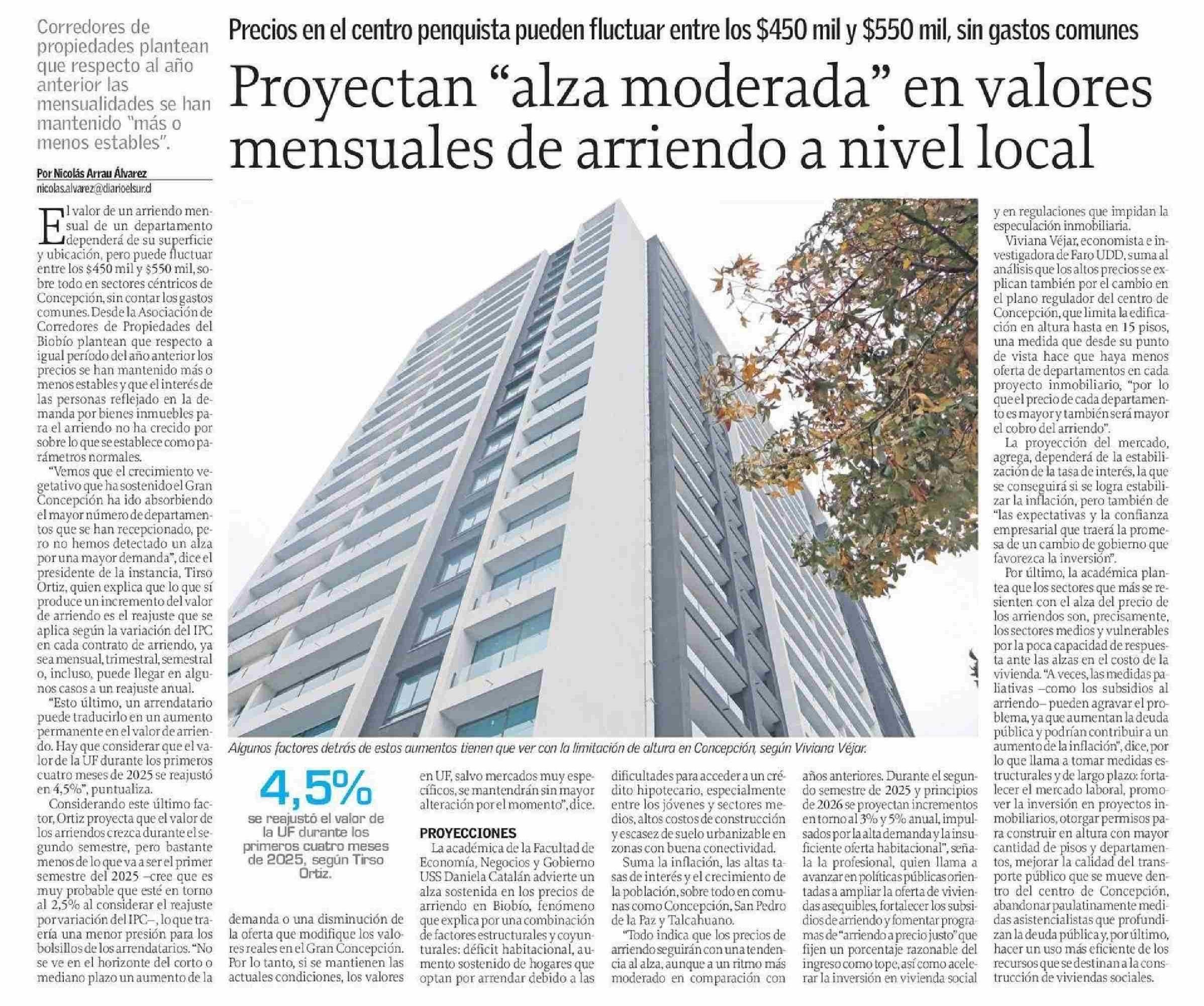 Título: Proyectan “alza moderada” en valores mensuales de arriendo a nivel local