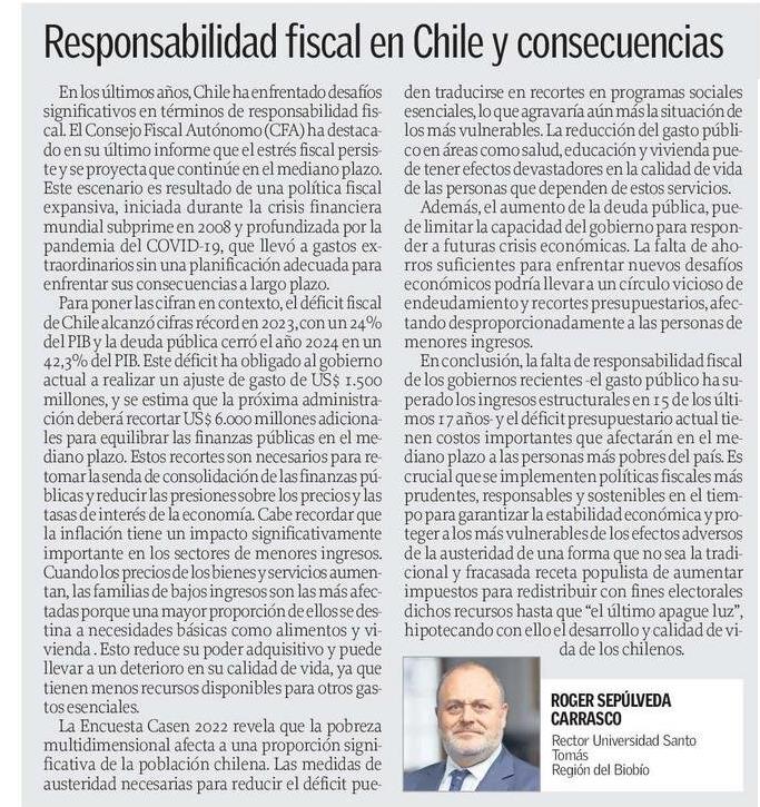 Responsabilidad fiscal en Chile y consecuencias 13-04-2025 El Sur |