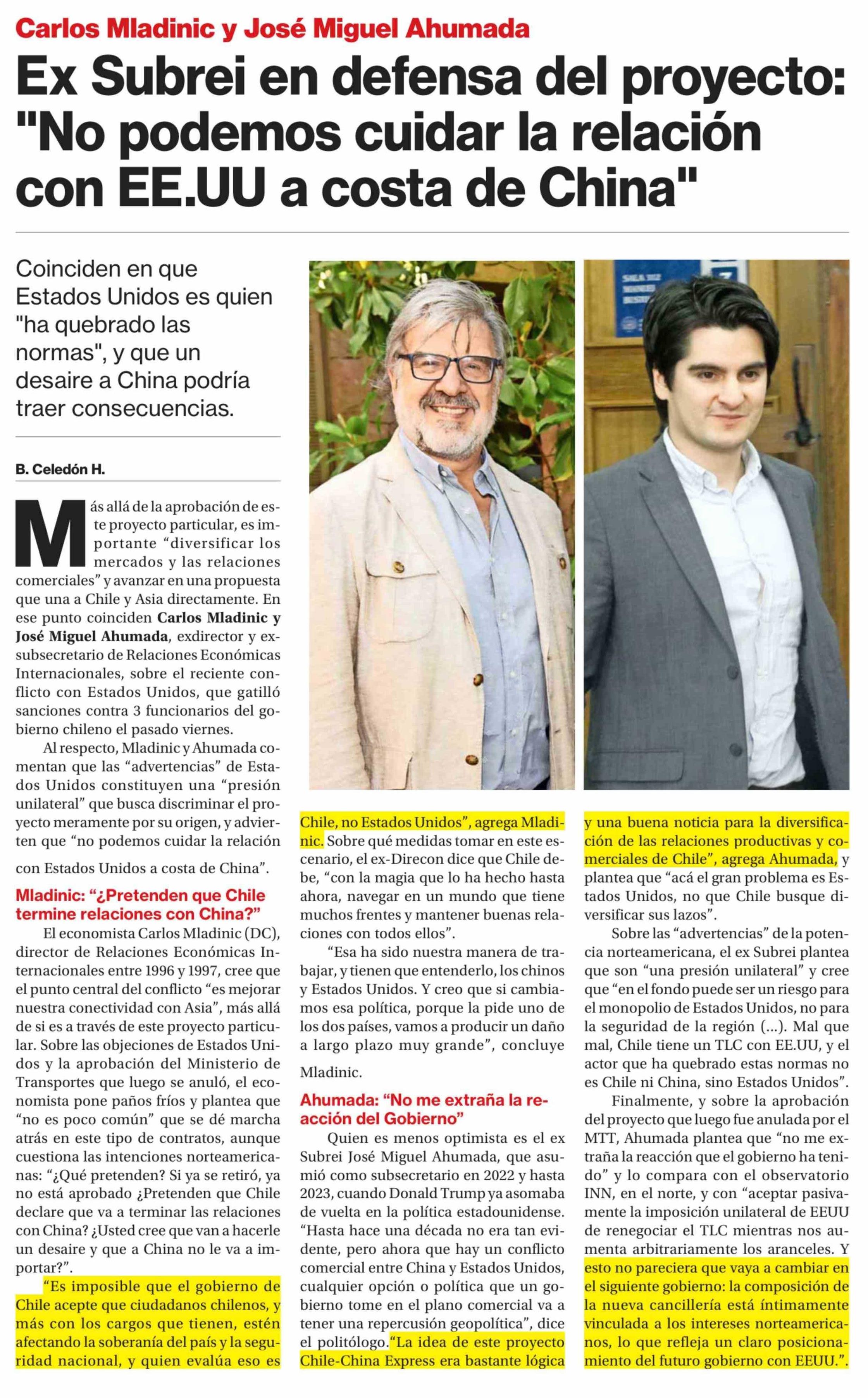 | Título: | Ex Subrei en defensa del proyecto: "No podemos cuidar la relación con EE.UU a costa de China" |