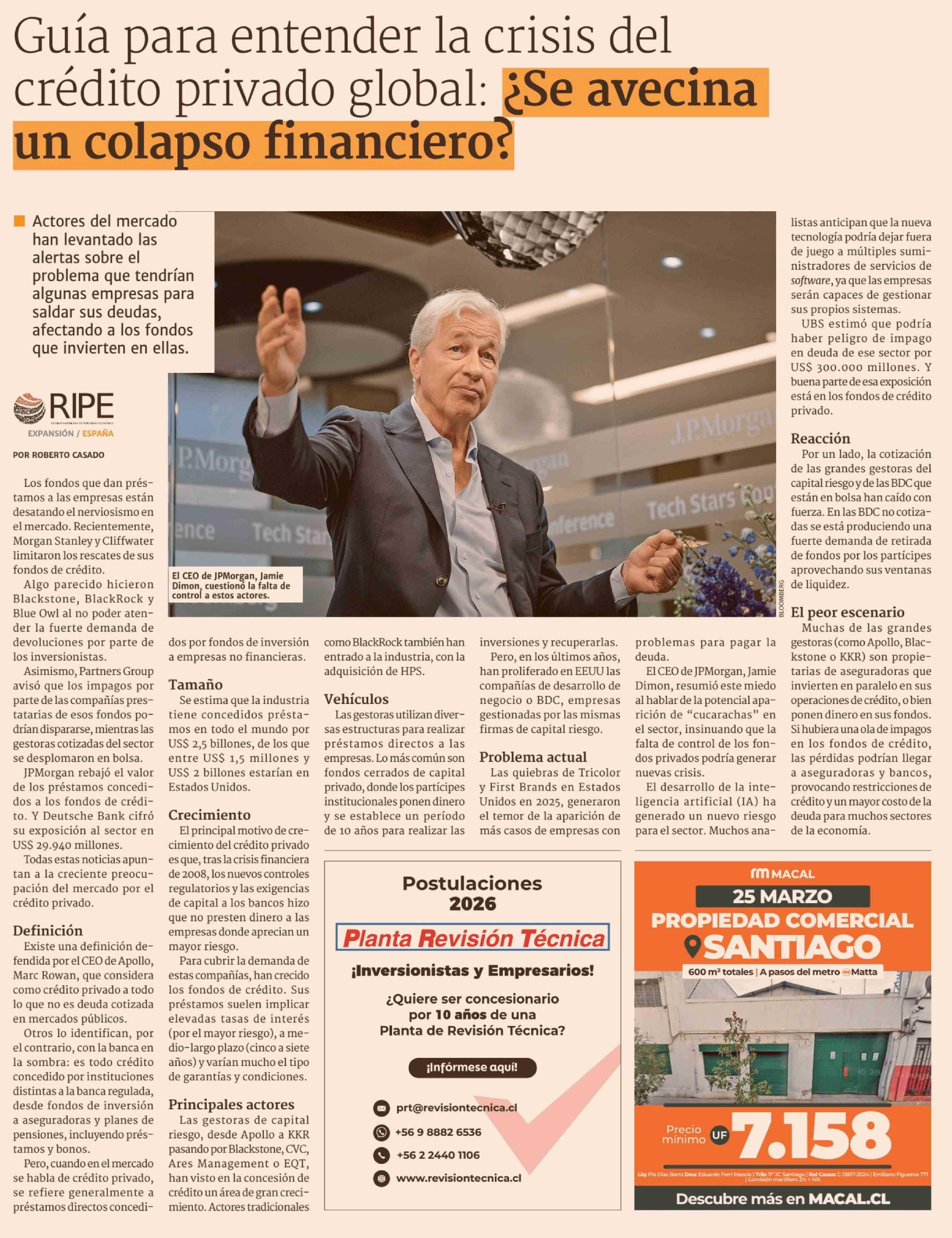 Guía para entender la crisis del crédito privado global: ¿ Se avecina un colapso financiero? 13-03-2026 Diario Financiero |