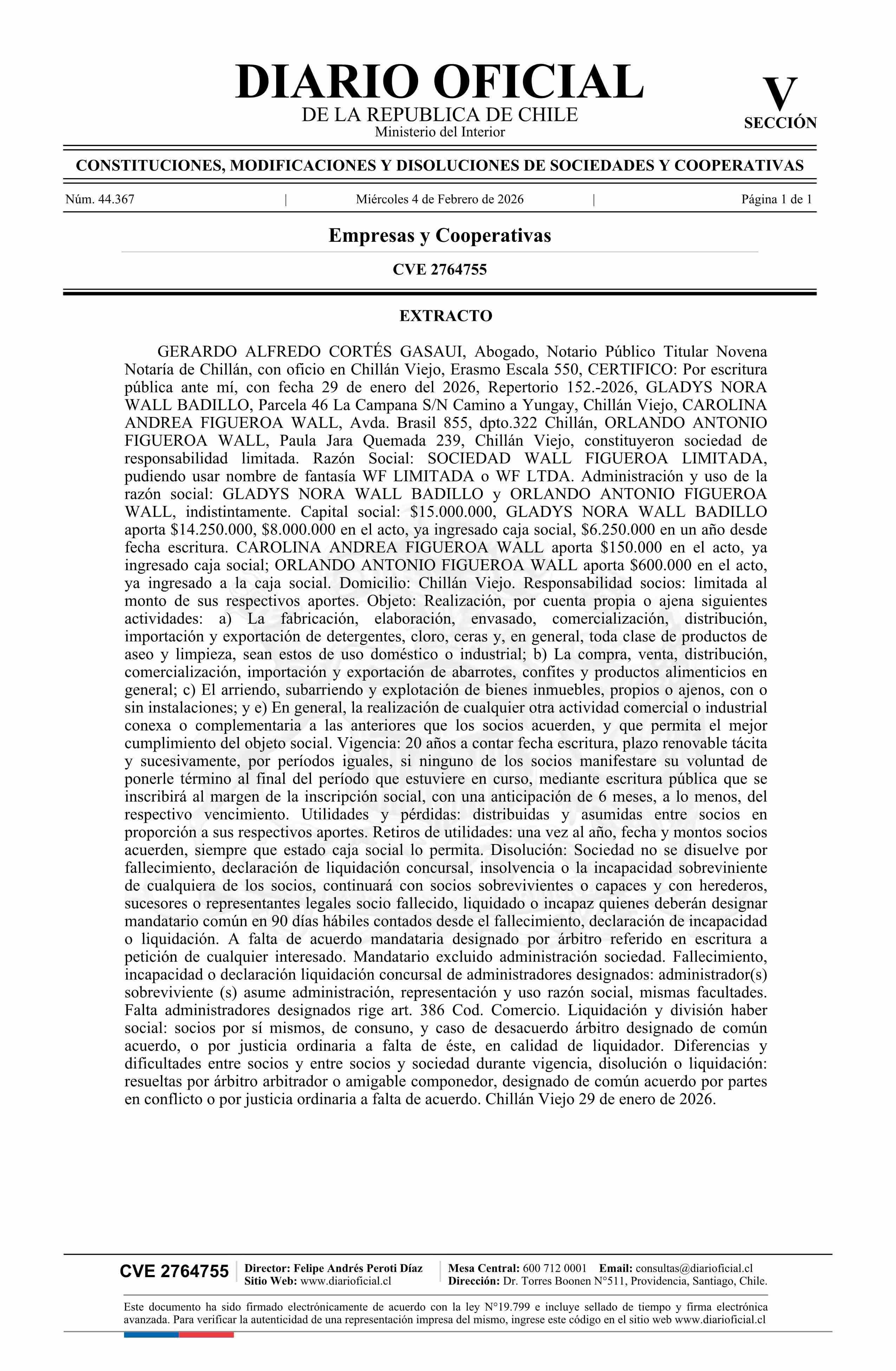 SOCIEDAD WALL FIGUEROA LIMITADA 04-02-2026 Diario Oficial Edición Electrónica |