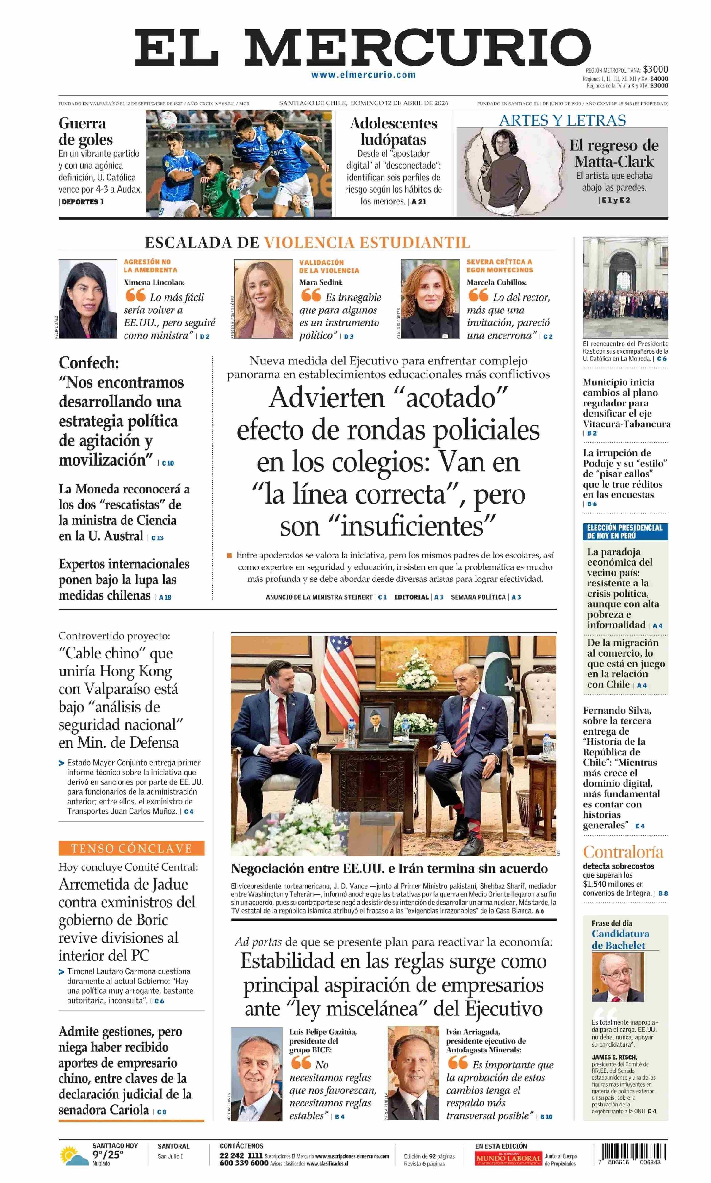 PORTADA EL MERCURIO SEGUNDA EDICIÓN (A) - CHILE 12-04-2026 El Mercurio |