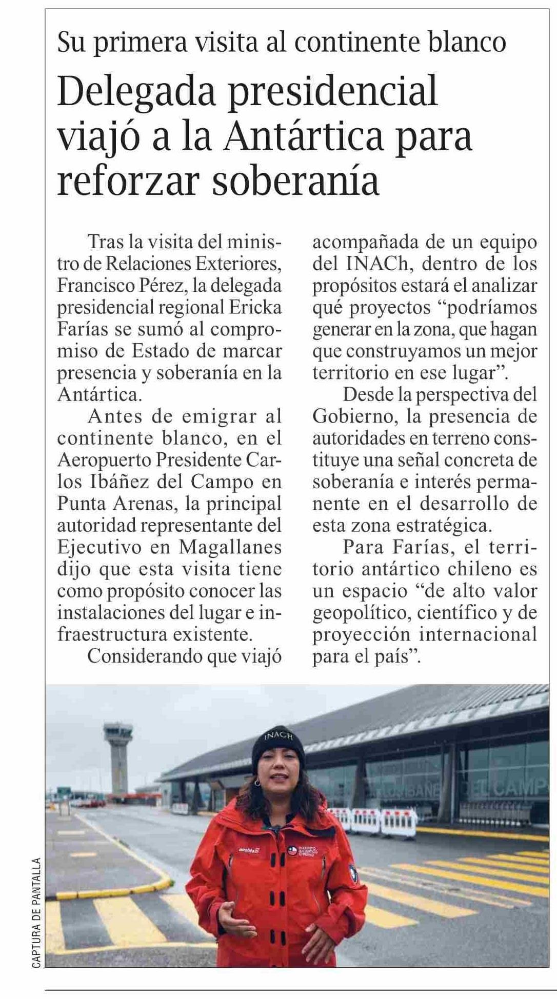 | Título: | Delegada presidencial viajó a la Antártica para reforzar soberanía |