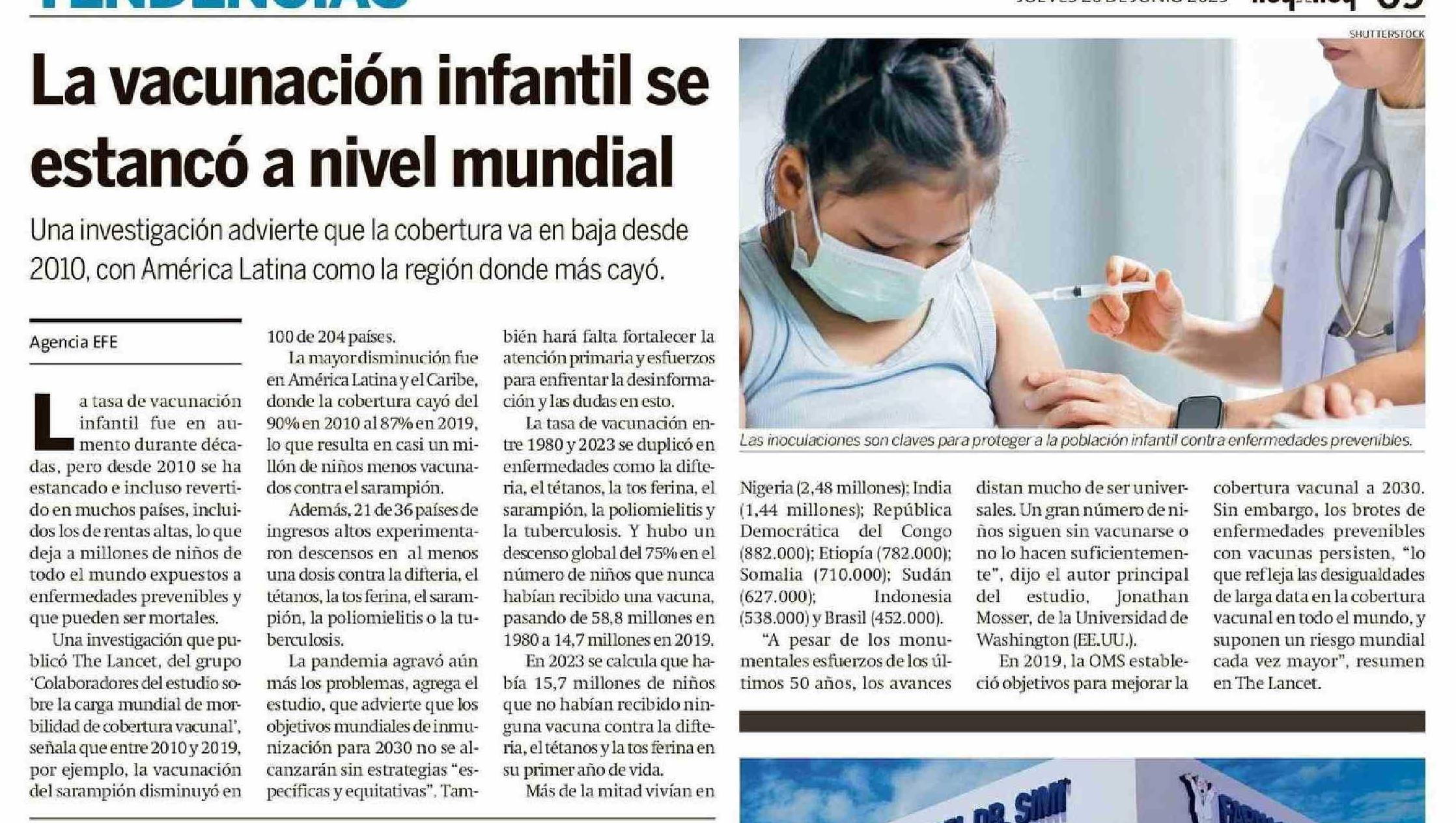 | Título: | La vacunación infantil se estancó a nivel mundial |