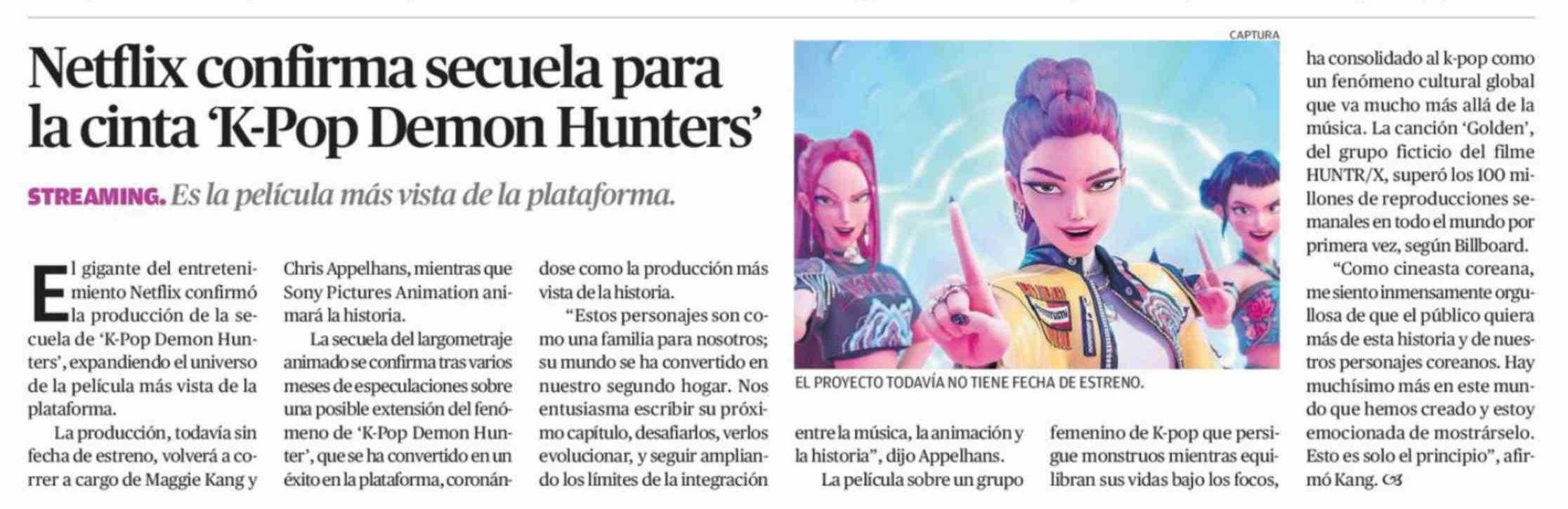 Netflix confirma secuela para la cinta 'K-Pop Demon Hunters' 14-03-2026 El Diario de Atacama |
