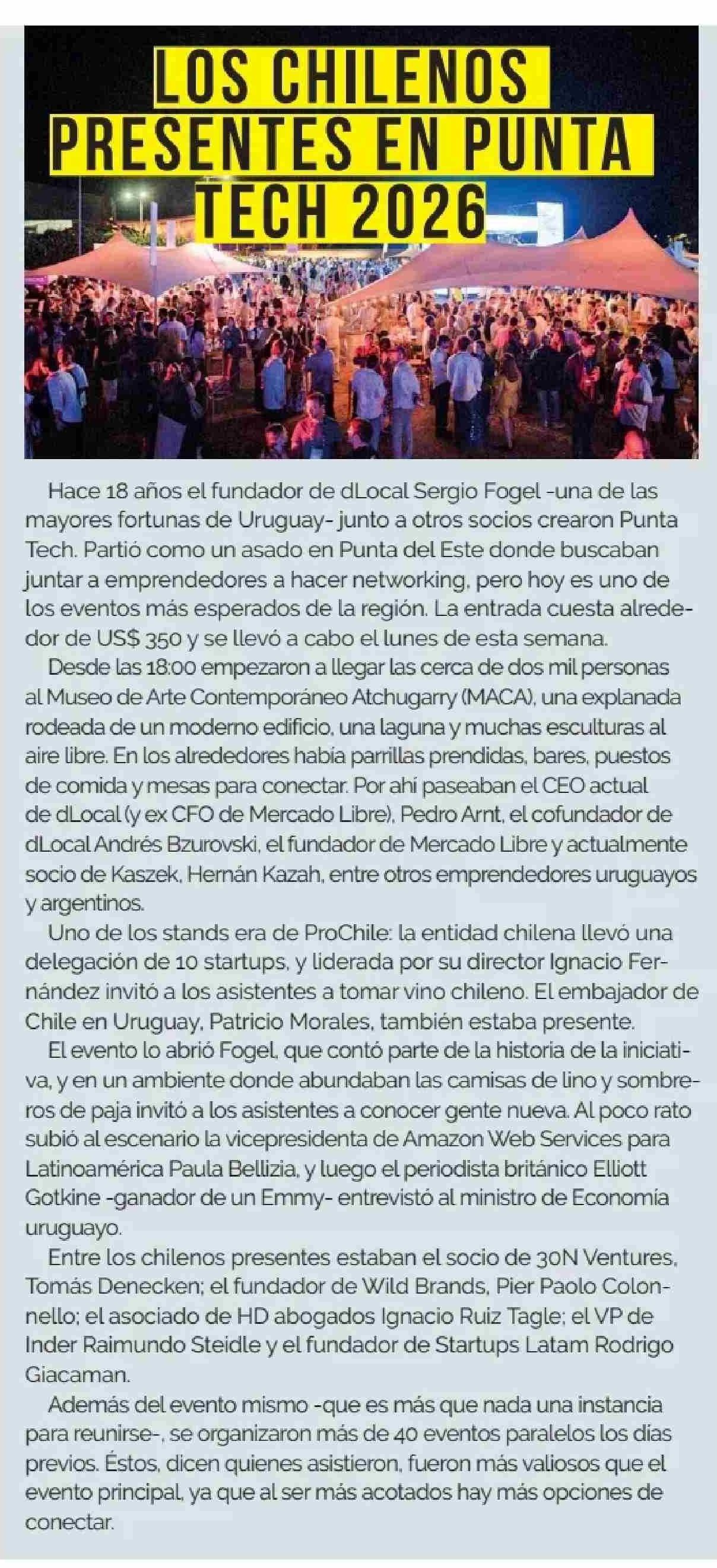 LOS CHILENOS PRESENTES EN PUNTA TECH 2026 18-01-2026 Diario Financiero |