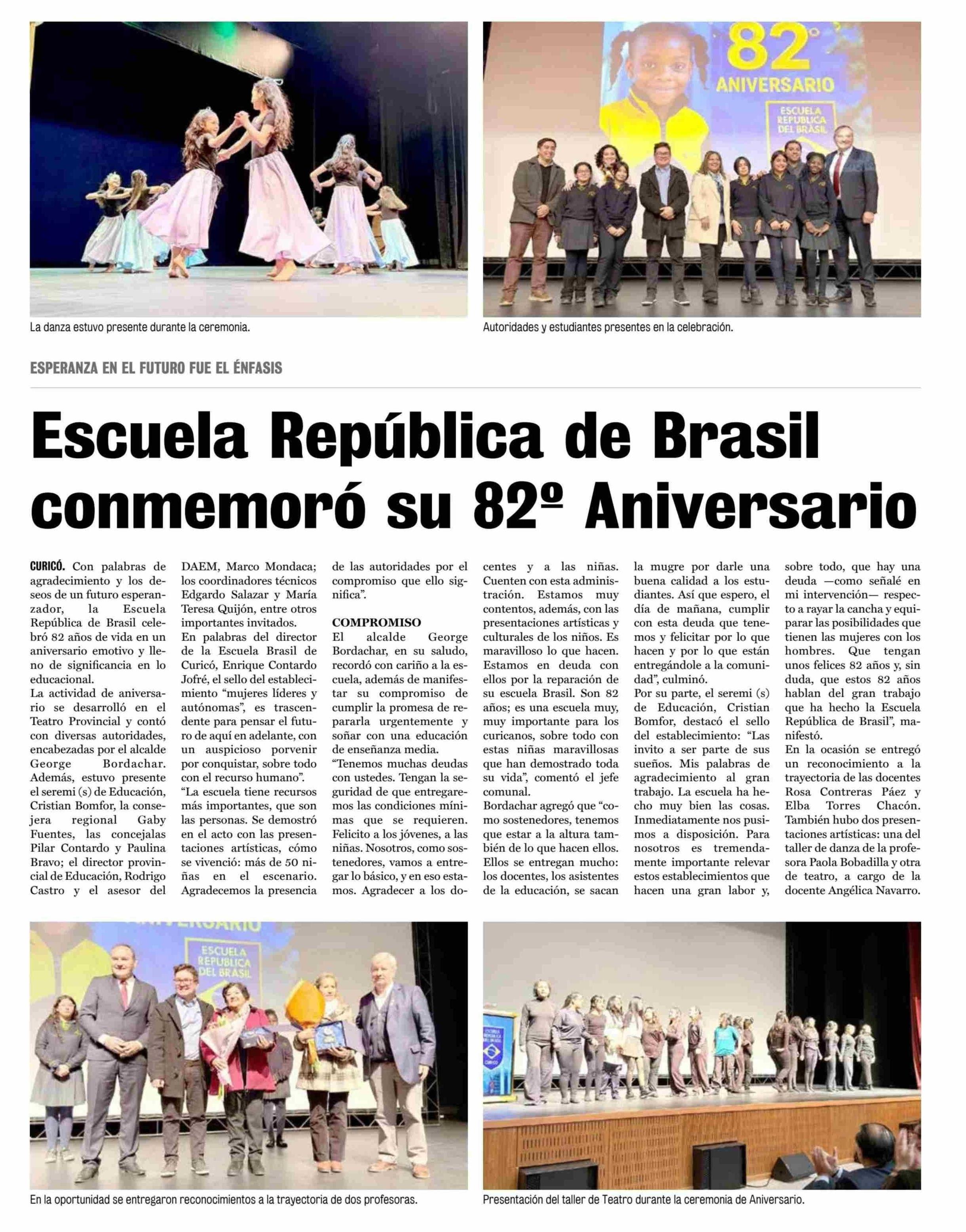 Escuela República de Brasil conmemoró su 822 Aniversario 04-06-2025 La Prensa de Curicó |