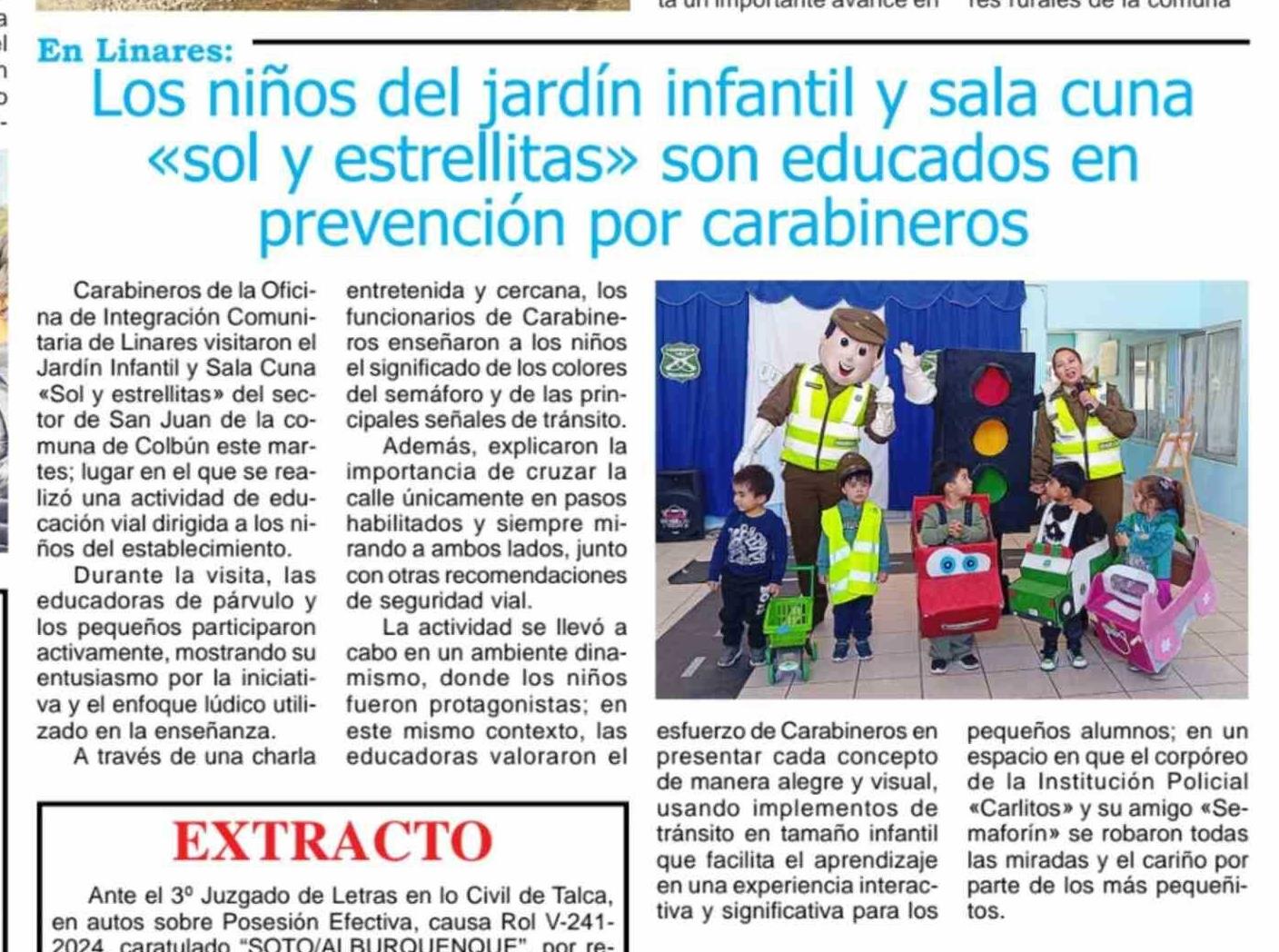 | Título: | Los niños del jardín infantil y sala cuna «sol y estrellitas» son educados en prevención por carabineros |