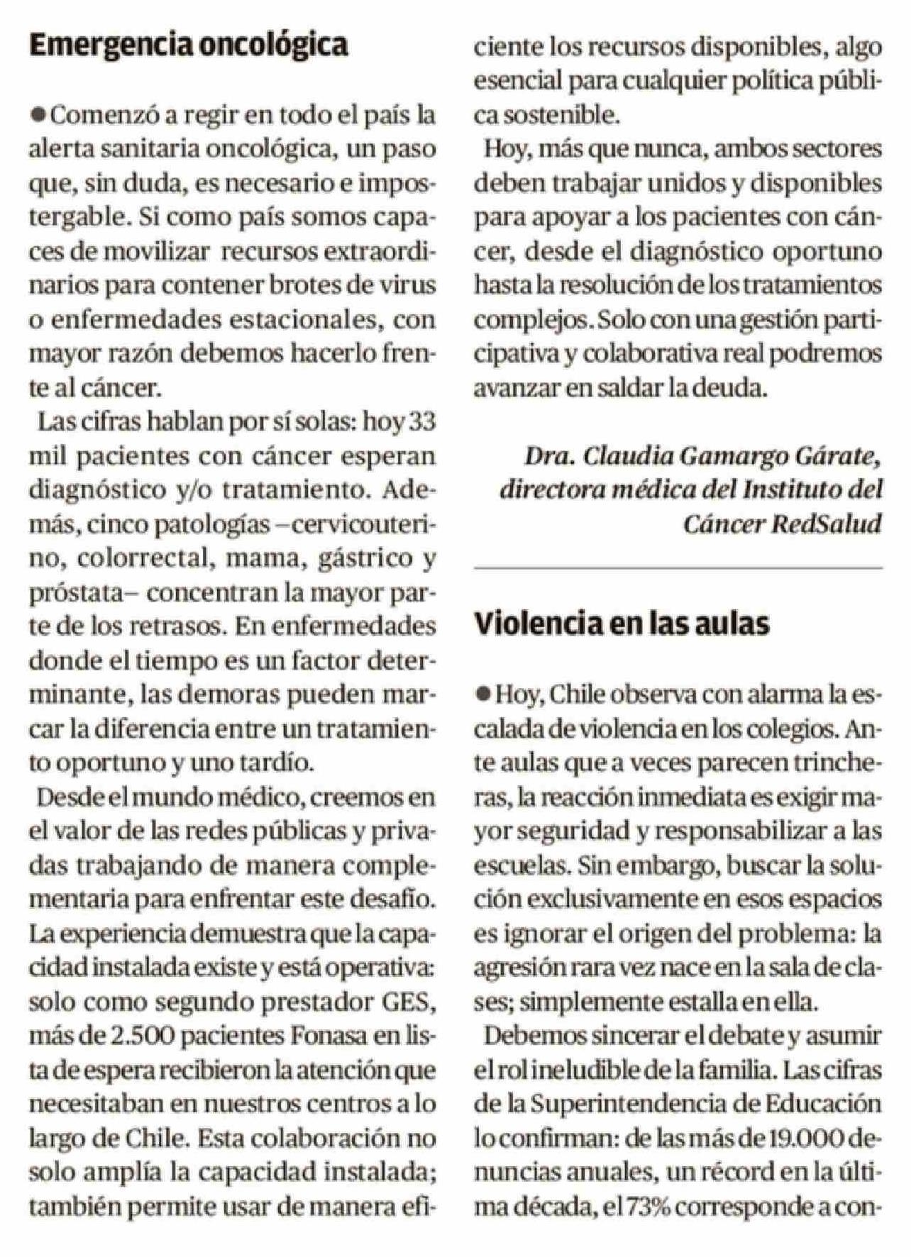 Cartas: Emergencia oncológica 21-04-2026 Crónica de Chillán |