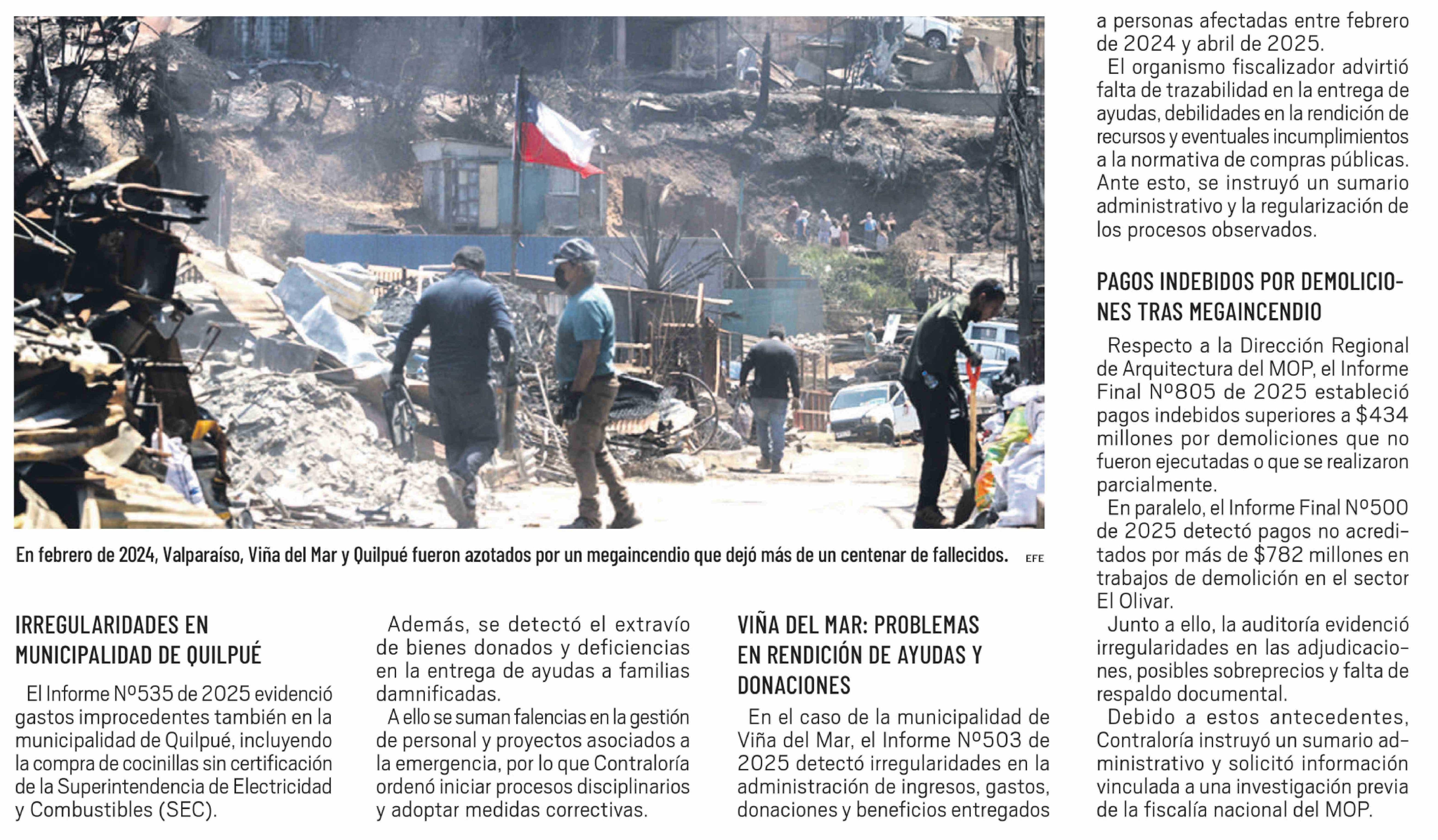 Detectan millonarias irregularidades en recursos destinados a megaincendio 11-02-2026 El Día |