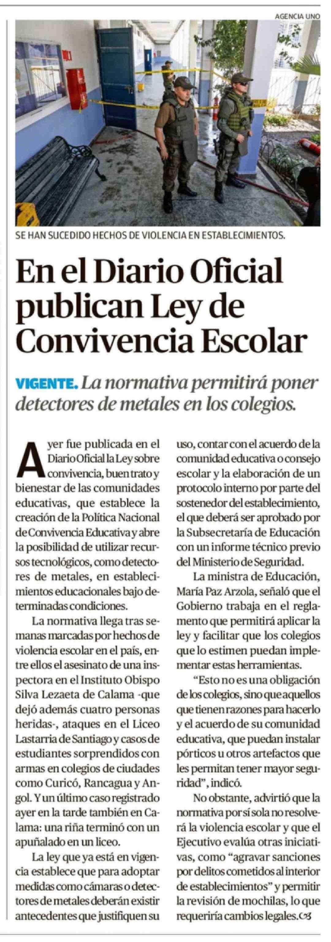 Título: En el Diario Oficial publican Ley de Convivencia Escolar