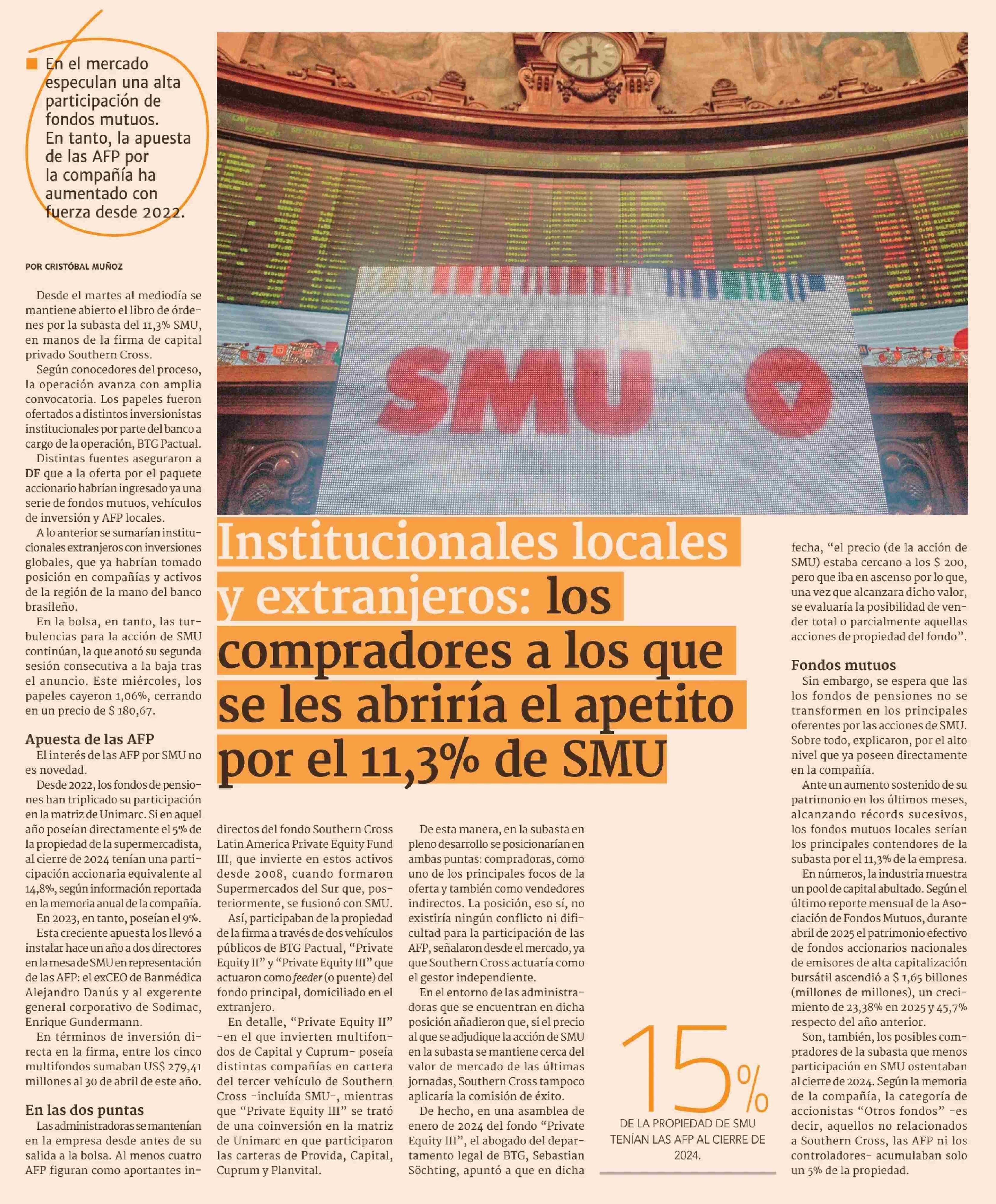 | Título: | Institucionales locales y extranjeros: los compradores a los que se les abriría el apetito por el 11,3% de SMU |