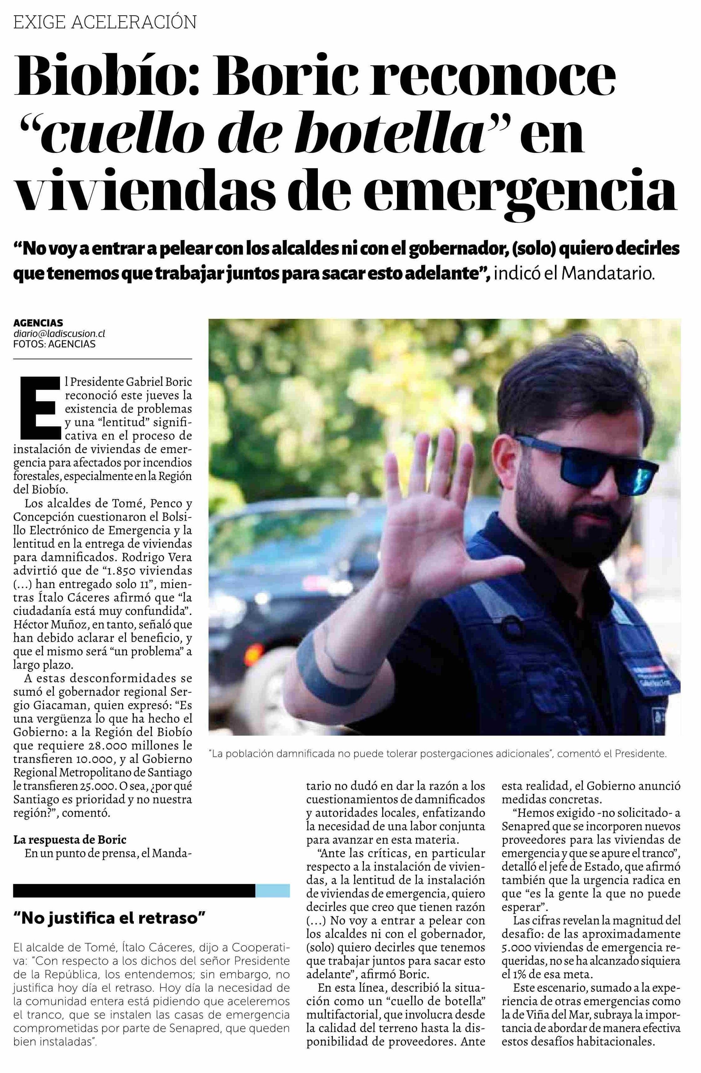 Título: Biobio: Boric reconoce "cuello de botella" en viviendas de emergencia