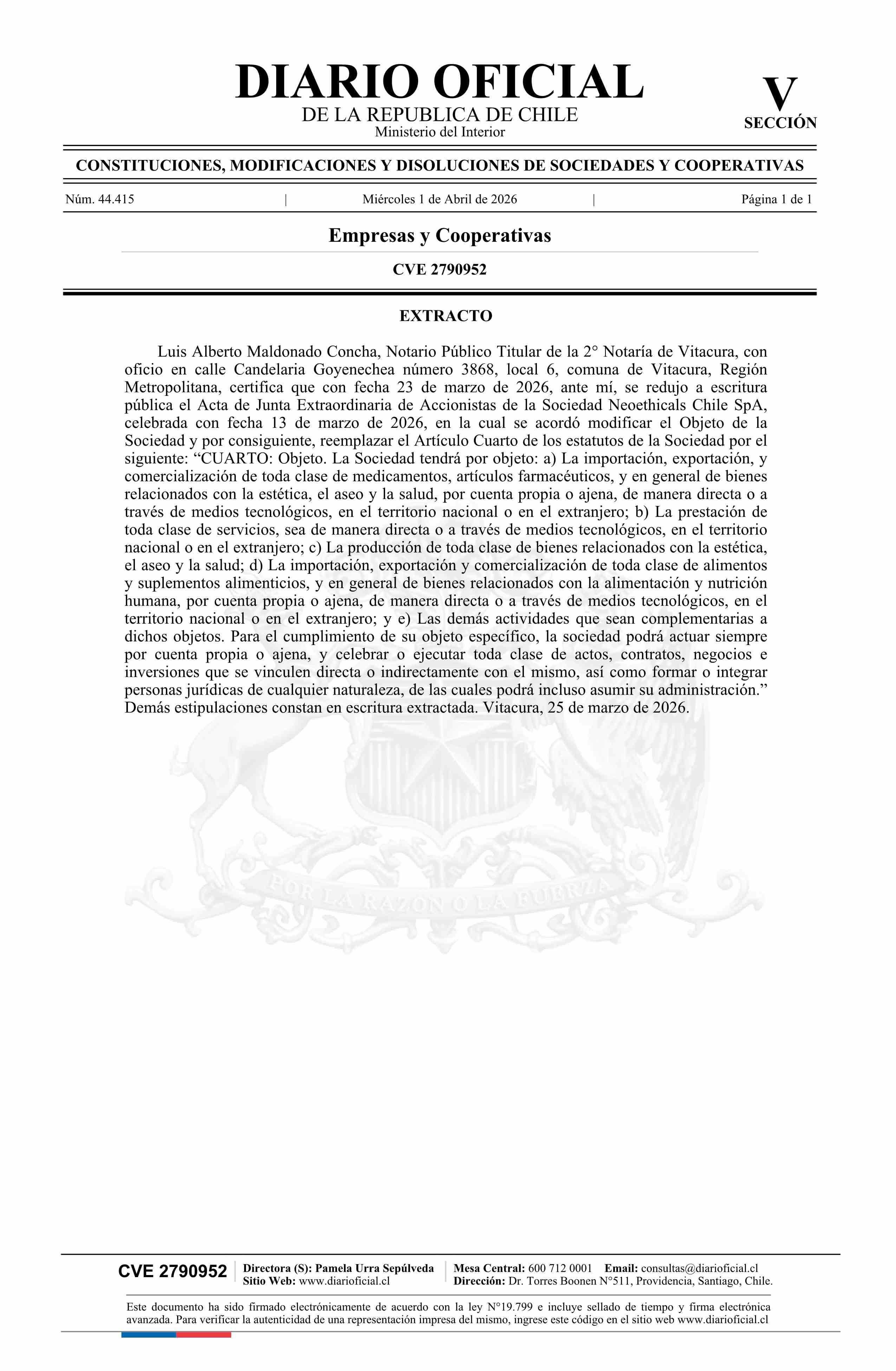 Título: Neoethicals Chile SpA 76.458.051-6*