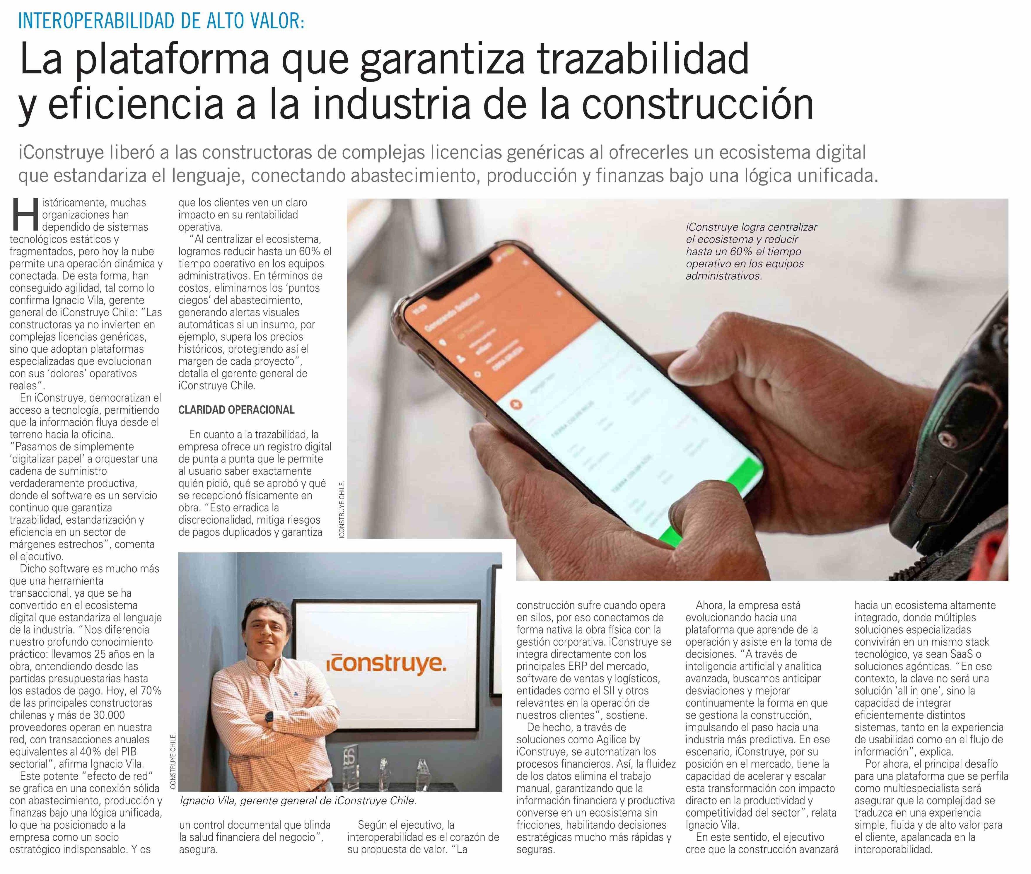 La plataforma que garantiza trazabilidad y eficiencia a la industria de la construcción 25-03-2026 El Mercurio |