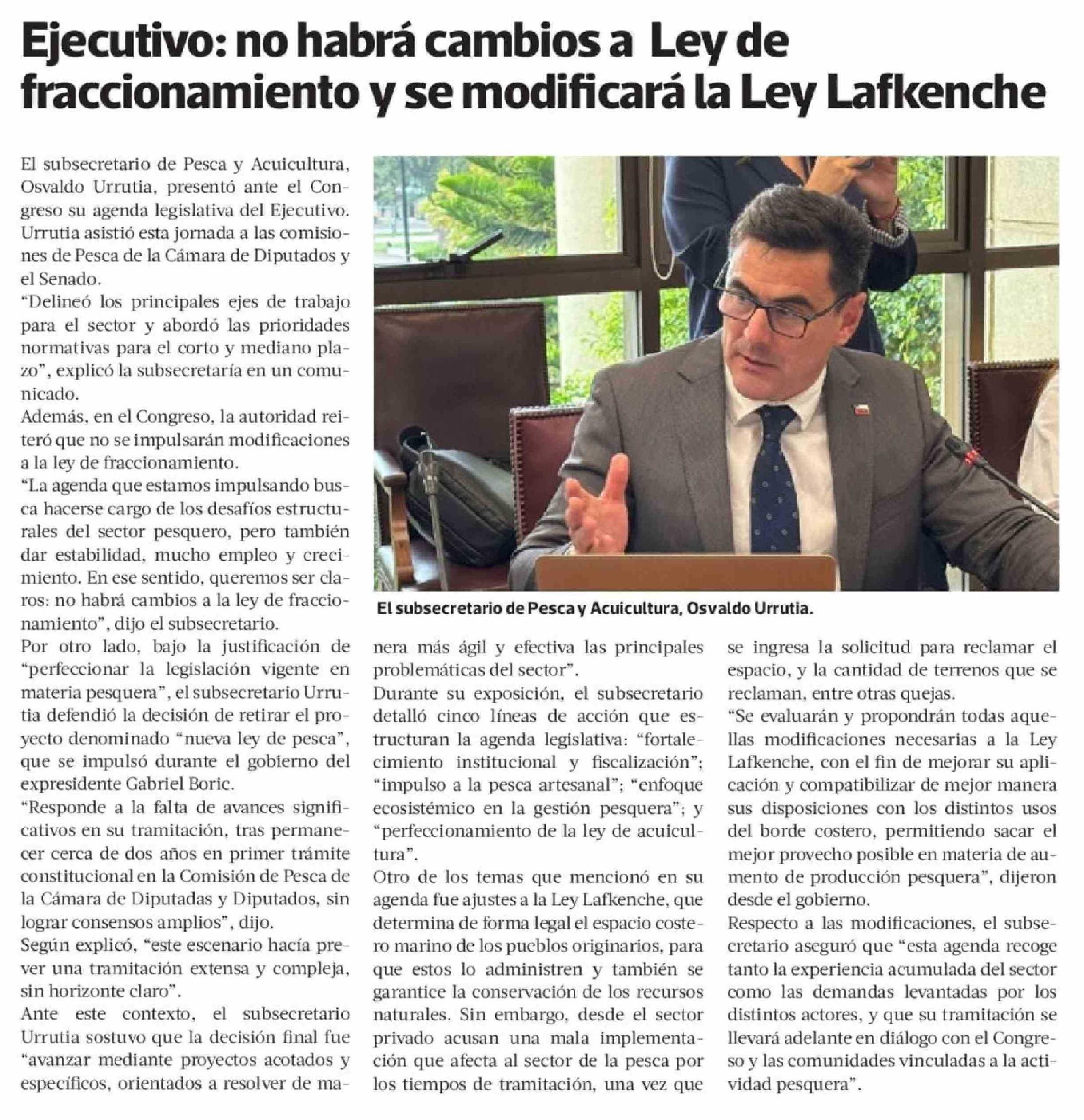 Ejecutivo: no habrá cambios a Ley de fraccionamiento y se modificará la Ley Lafkenche 09-04-2026 La Tercera |