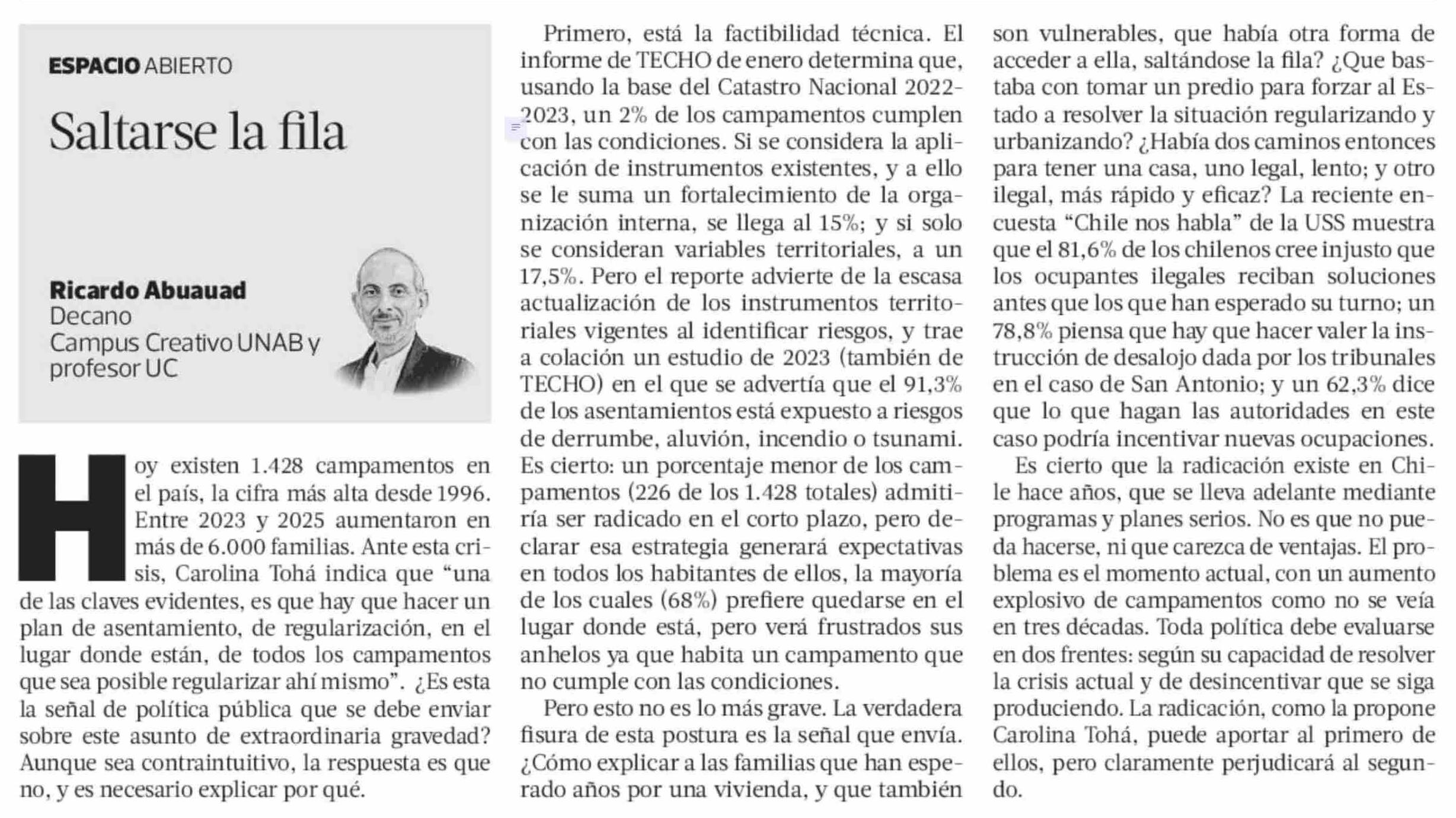 Título: Columnas de Opinión: Saltarse la fila