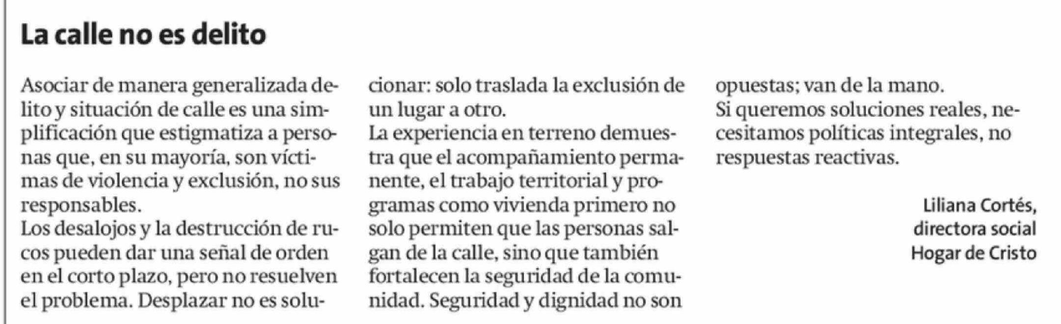 Título: Columnas de Opinión: La calle no es delito