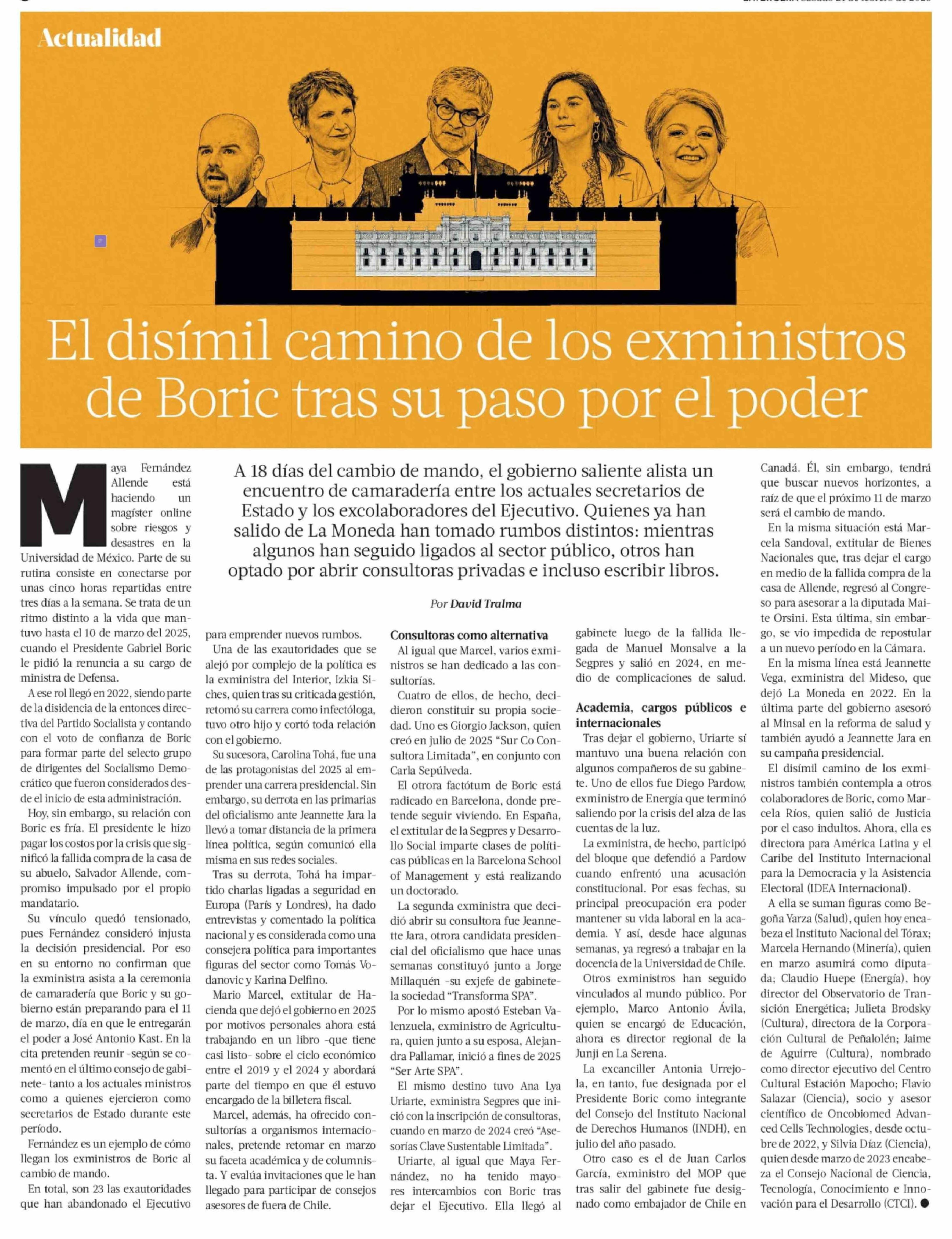 Título: El disímil camino de los exministros de Boric tras su paso por el poder