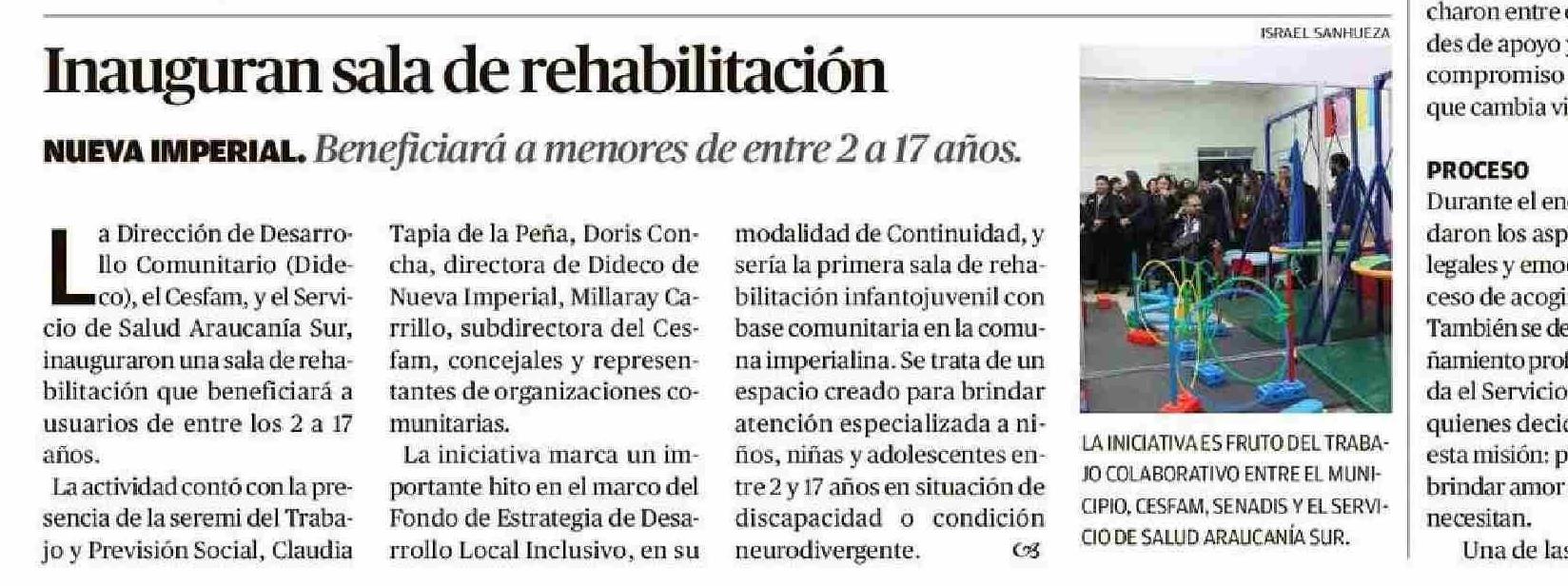 Inauguran sala de rehabilitación 16-06-2025 El Austral de la Araucanía |