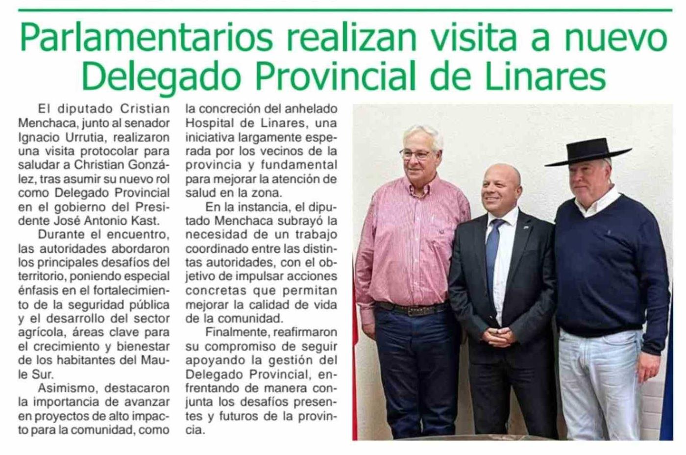 Título: Parlamentarios realizan visita a nuevo Delegado Provincial de Linares