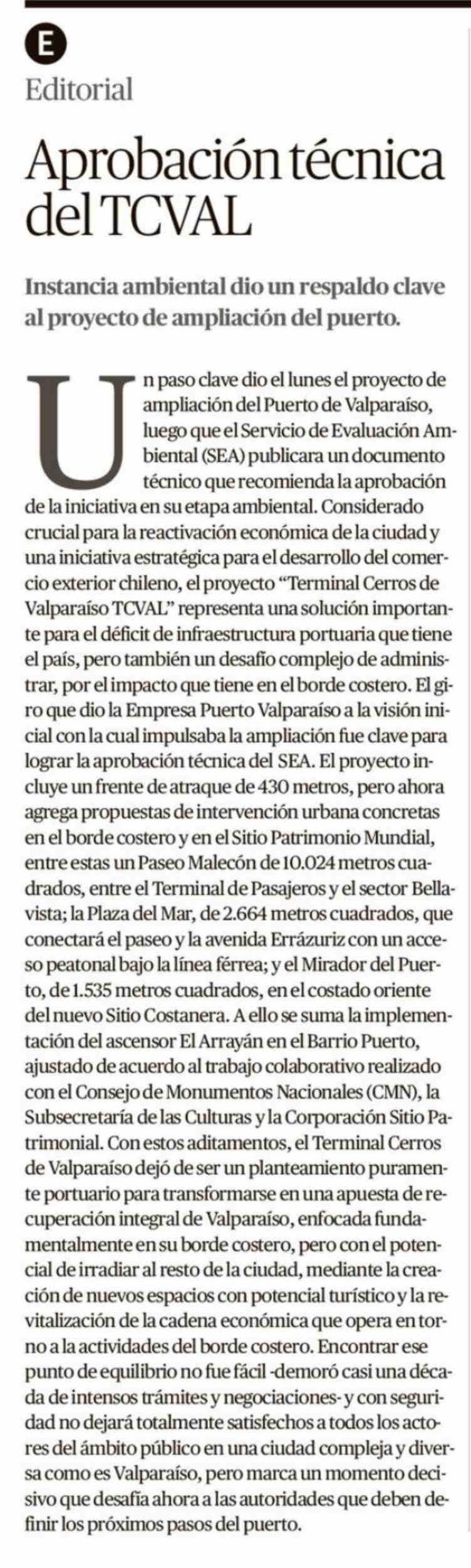 Editorial: Aprobación técnica del TCVAL 25-02-2026 El Mercurio de Valparaíso |