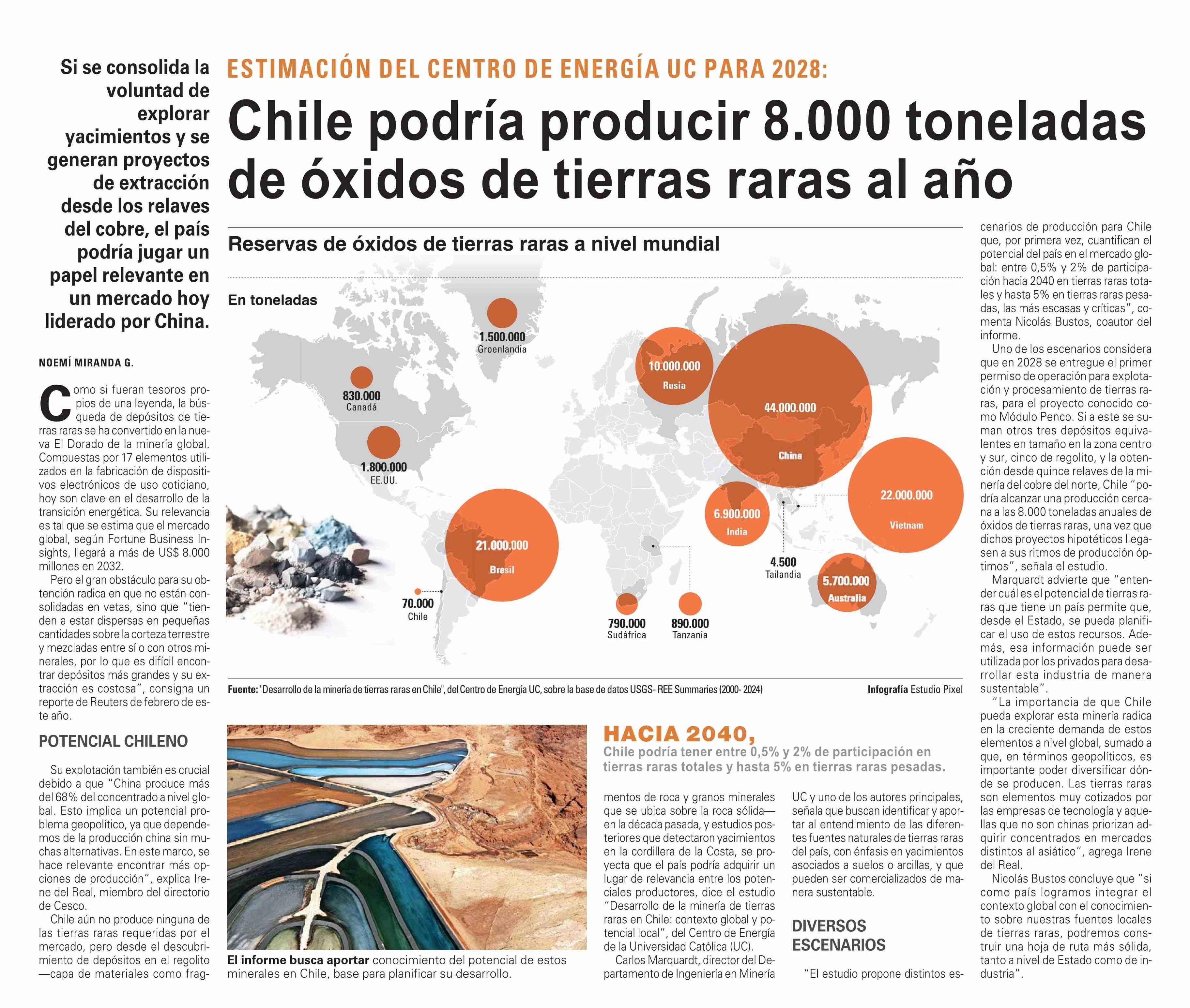 Chile podría producir 8.000 toneladas de óxidos de tierras raras al año 20-05-2025 El Mercurio |