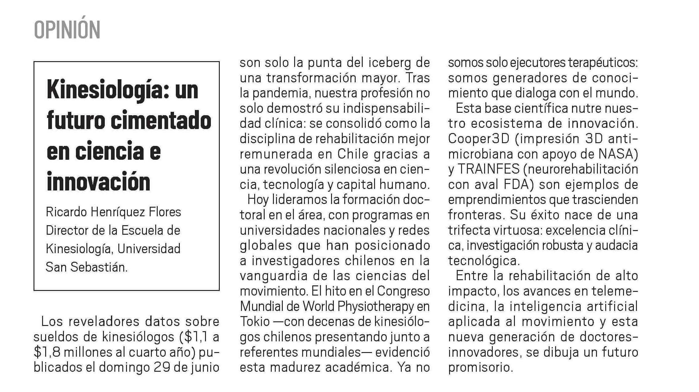 COLUMNAS DE OPINIÓN: Kinesiología: un futuro cimentado en ciencia e innovación 09-07-2025 El Día |