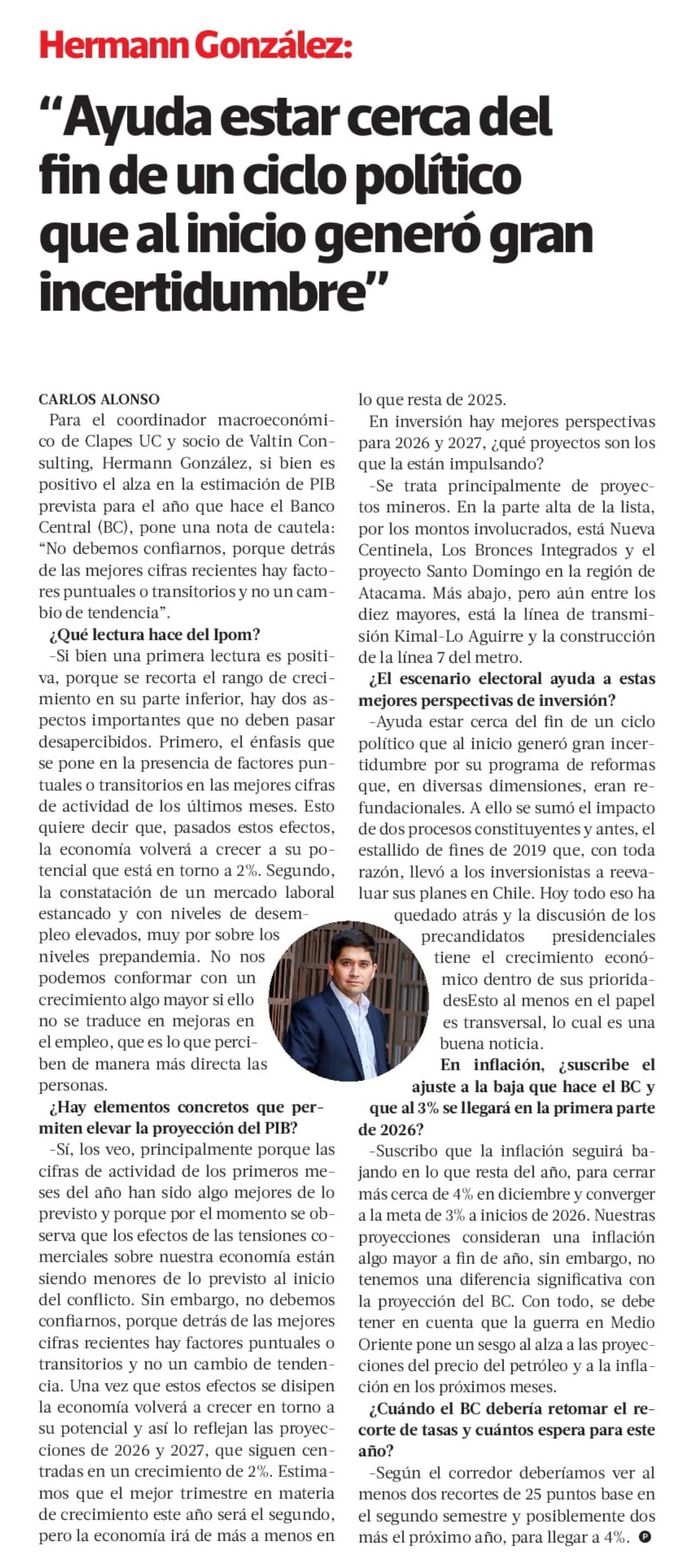 “Ayuda estar cerca del fin de un ciclo político que al inicio generó gran incertidumbre” 19-06-2025 La Tercera |