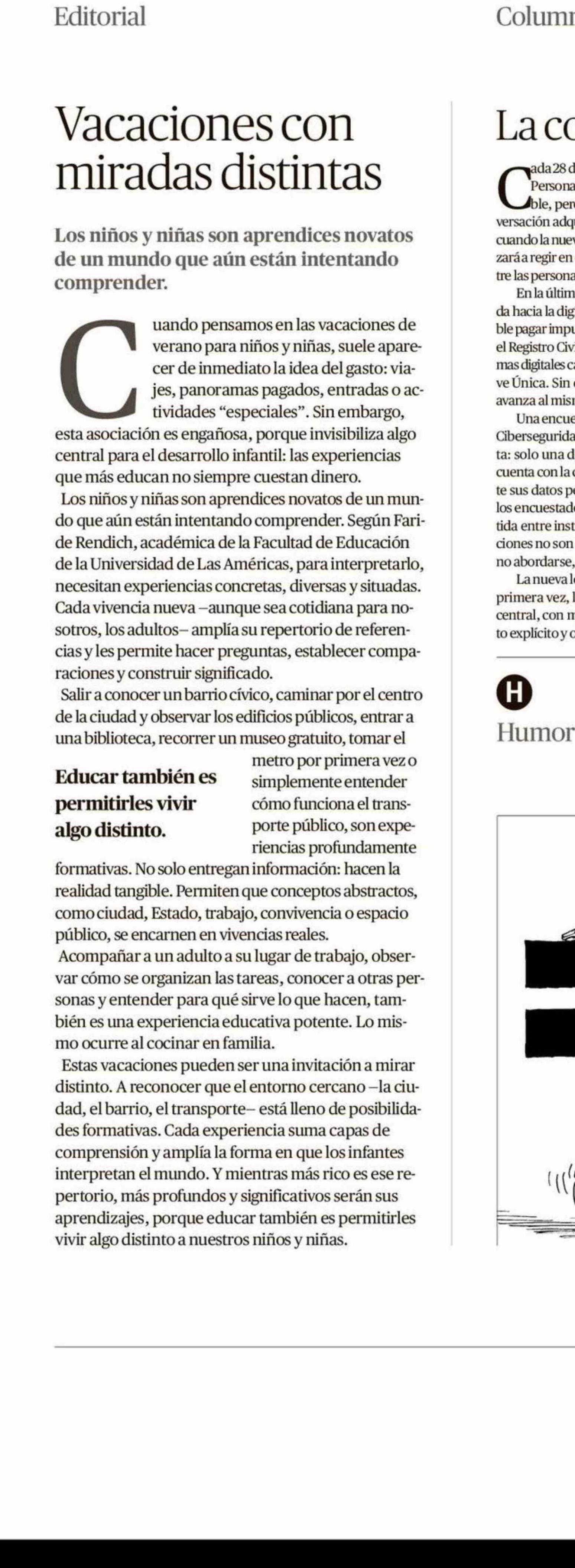 Título: EDITORIAL: Vacaciones con miradas distintas