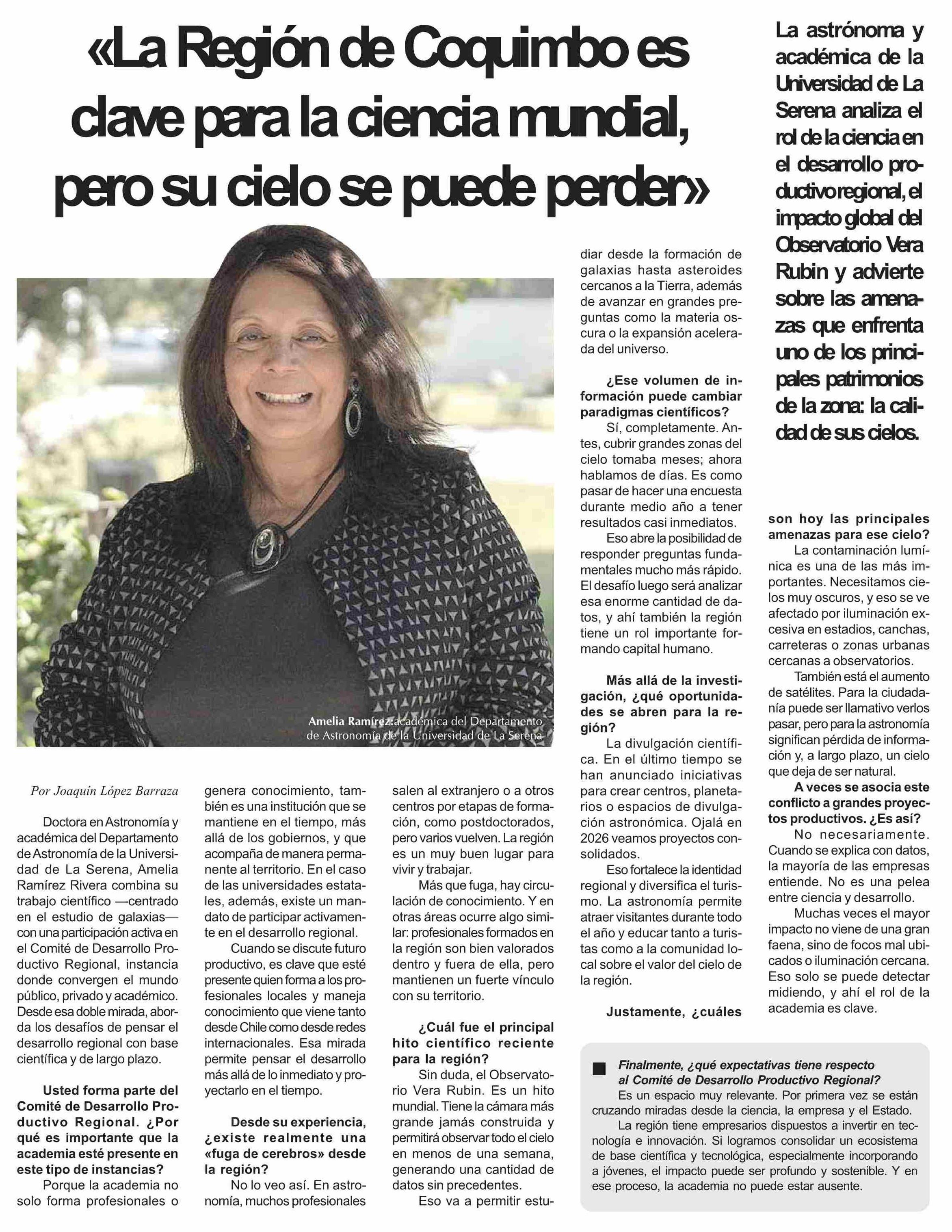 «La Región de Coquimbo es clave para la ciencia mundial, pero su cielo se puede perder» 11-01-2026 Diario la Región |
