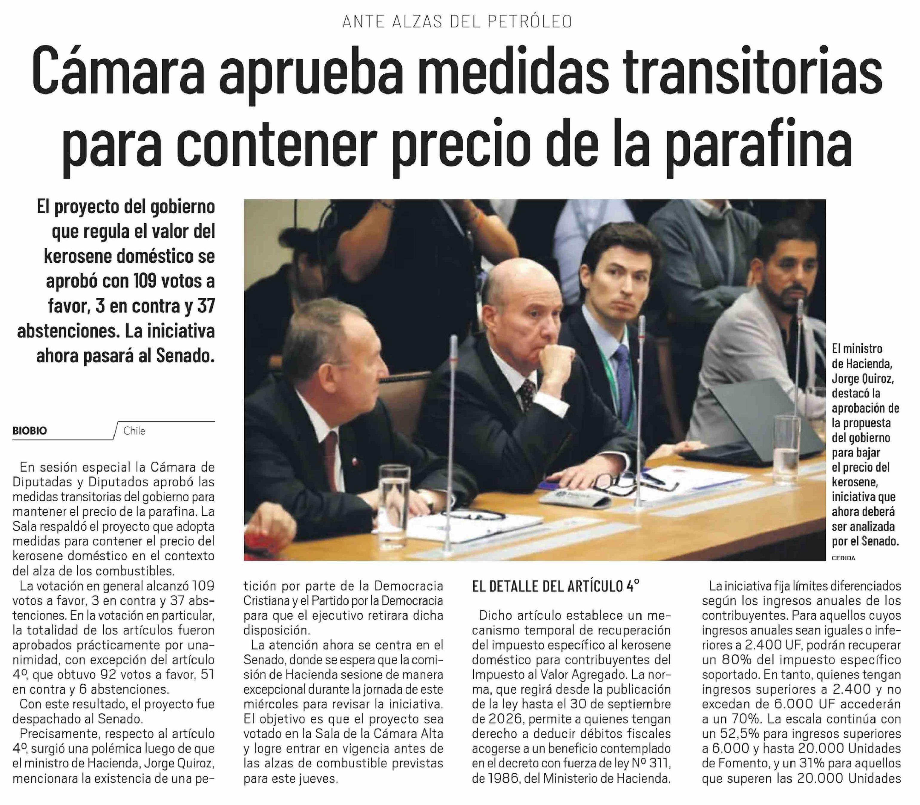 Cámara aprueba medidas transitorias para contener precio de la parafina 25-03-2026 El Día |