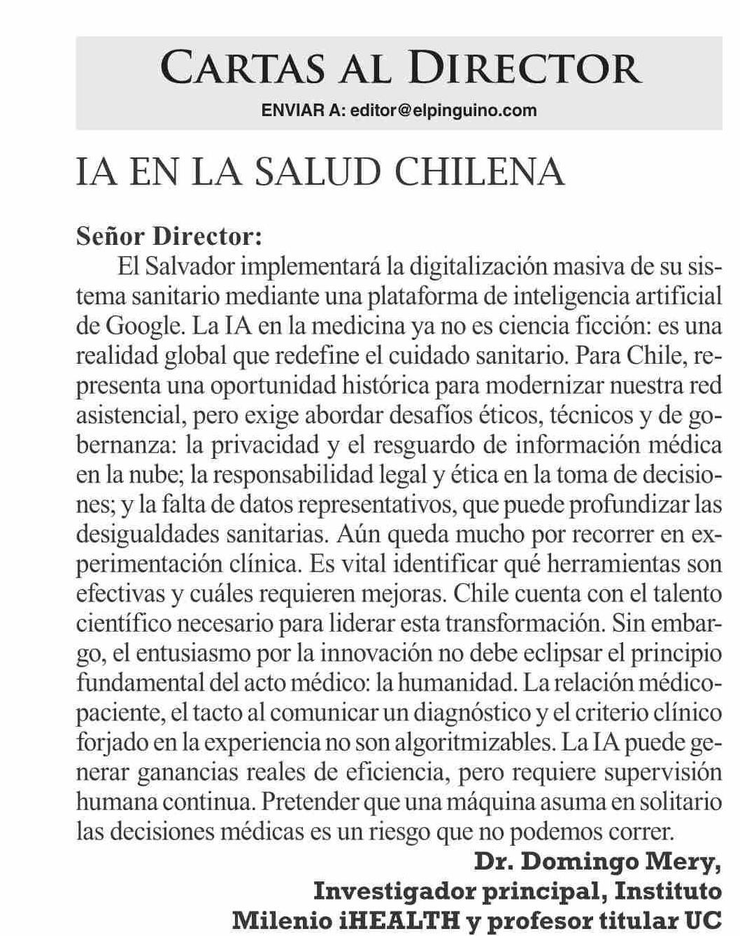 CARTAS: IA EN LA SALUD CHILENA