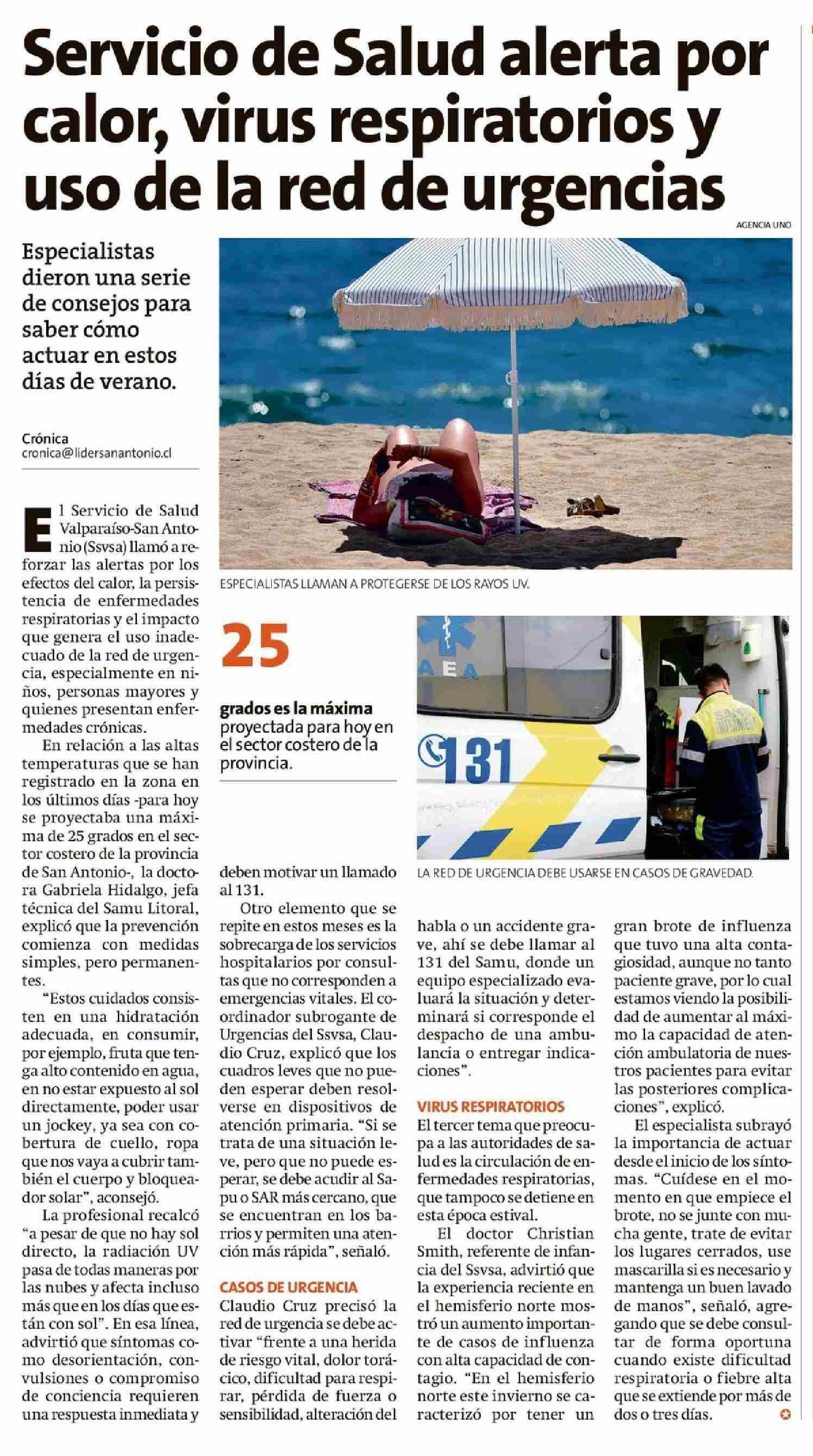 Servicio de Salud alerta por calor, virus respiratorios y uso de la red de urgencias 06-02-2026 El Líder |
