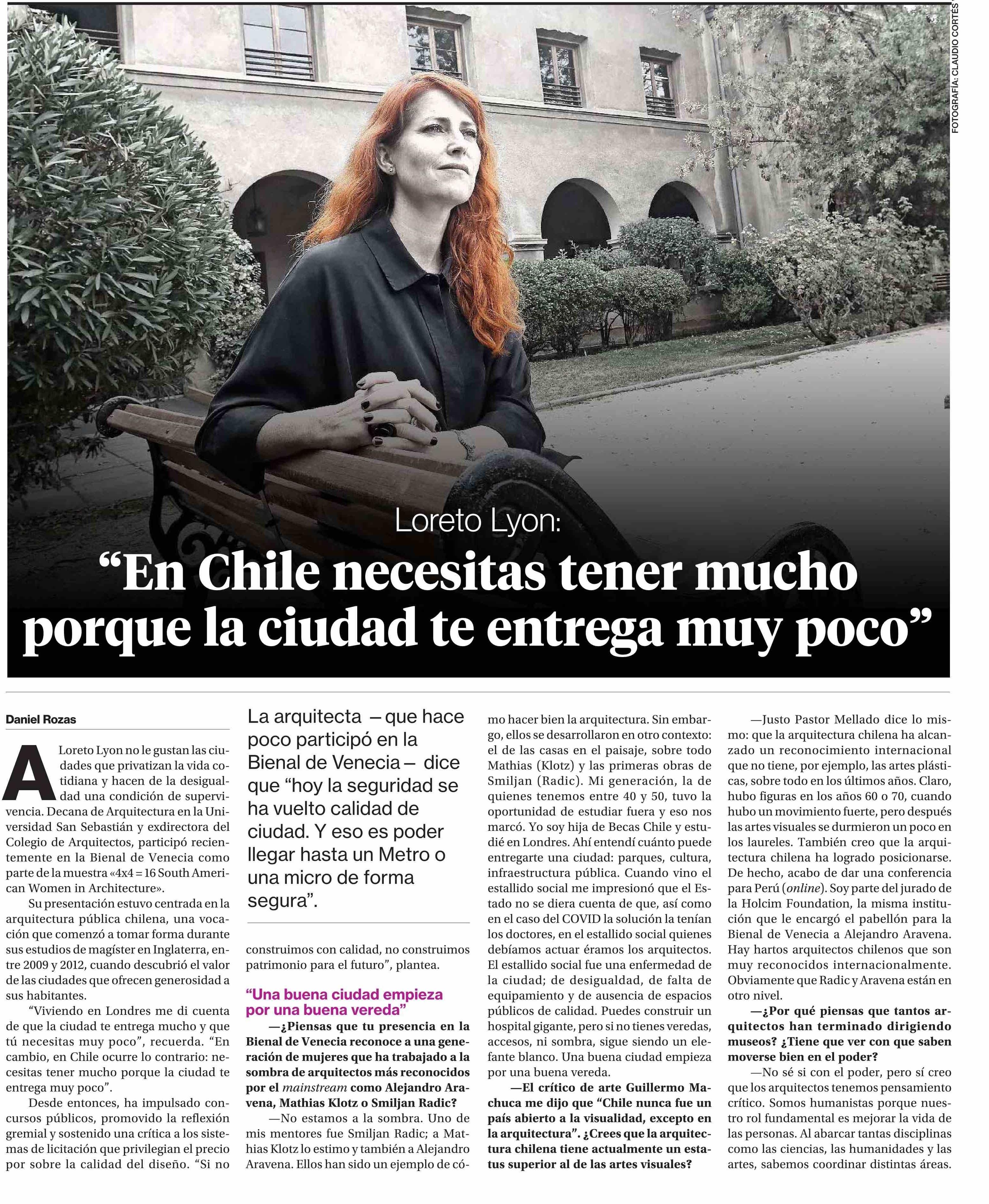 “En Chile necesitas tener mucho porque la ciudad te entrega muy poco” 28-05-2025 La Segunda |