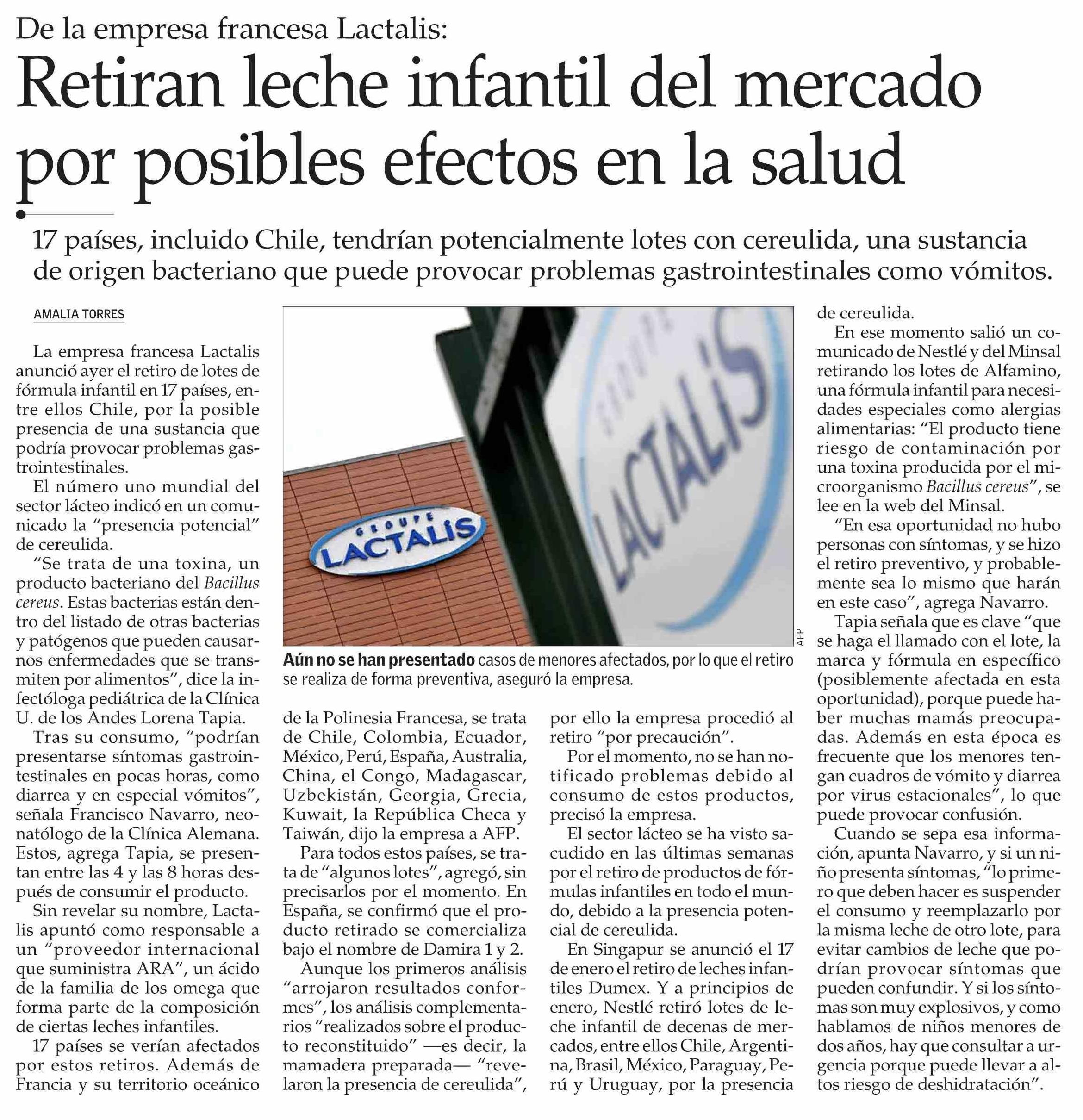 Retiran leche infantil del mercado por posibles efectos en la salud 22-01-2026 El Mercurio |