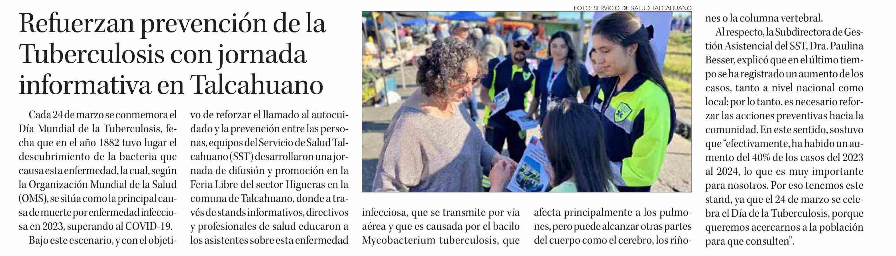 Refuerzan prevención de la Tuberculosis con jornada informativa en Talcahuano 22-03-2025 Diario Concepción |