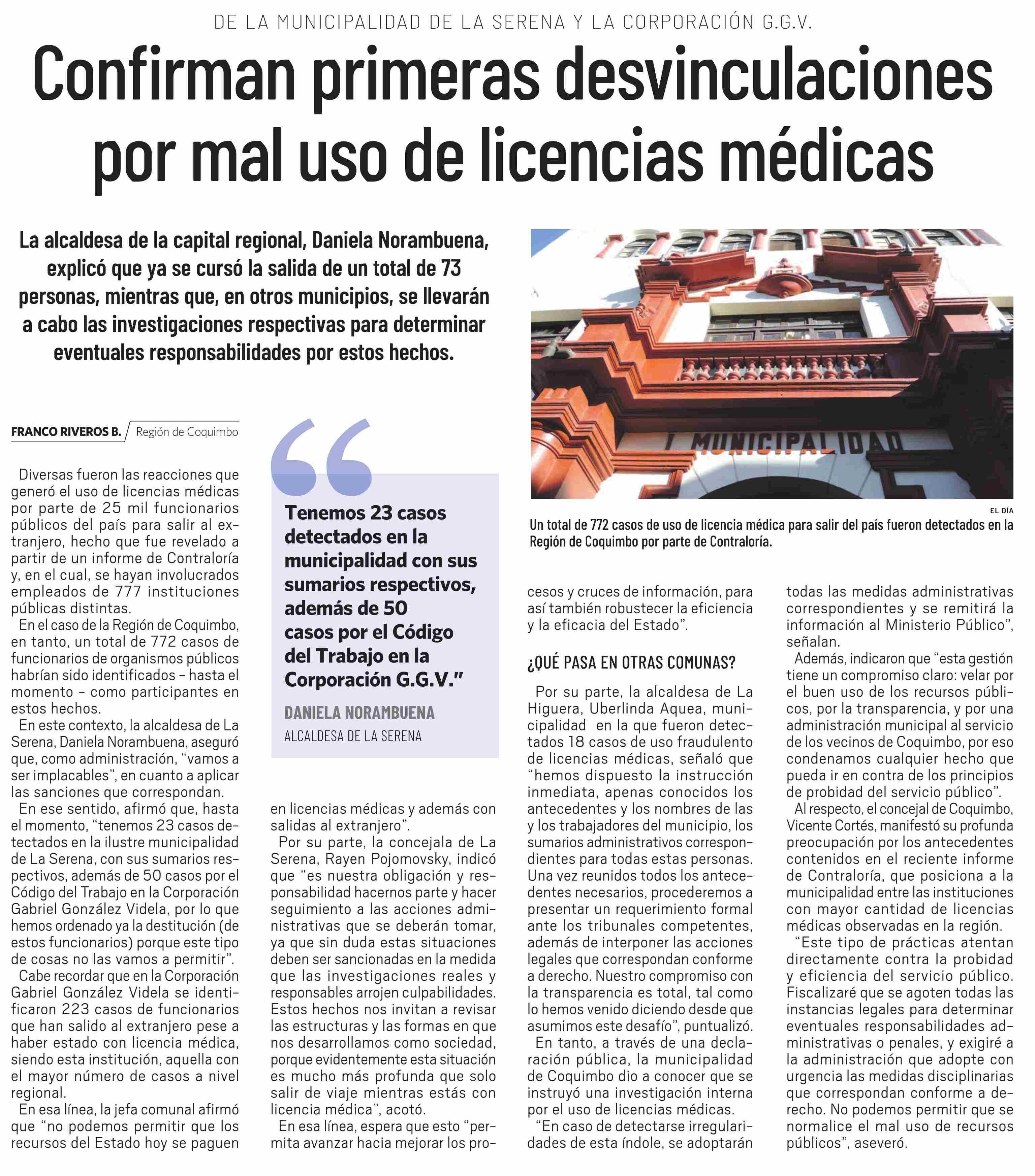 Confirman primeras desvinculaciones por mal uso de licencias médicas 27-05-2025 El Día |