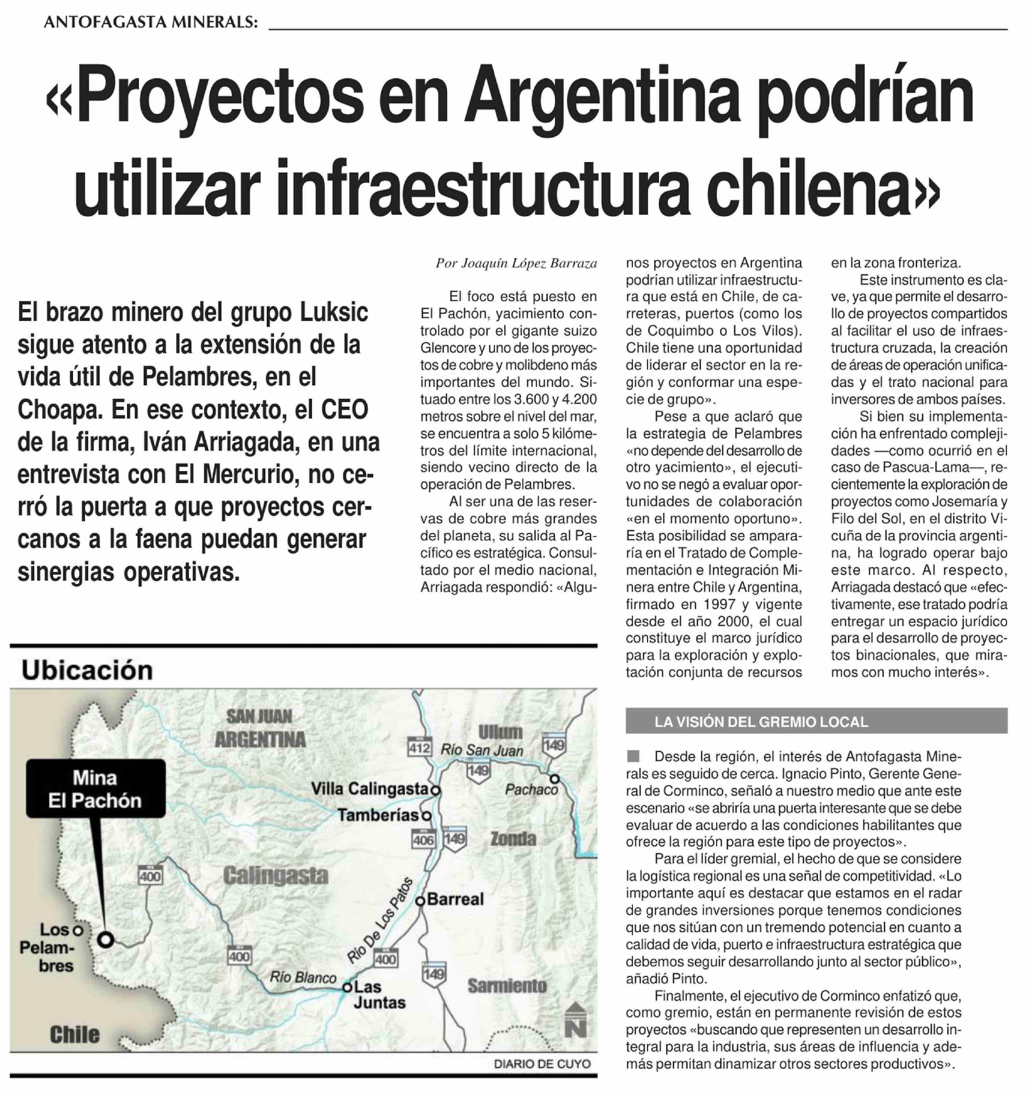 | Título: | «Proyectos en Argentina podrían utilizar infraestructura chilena» |