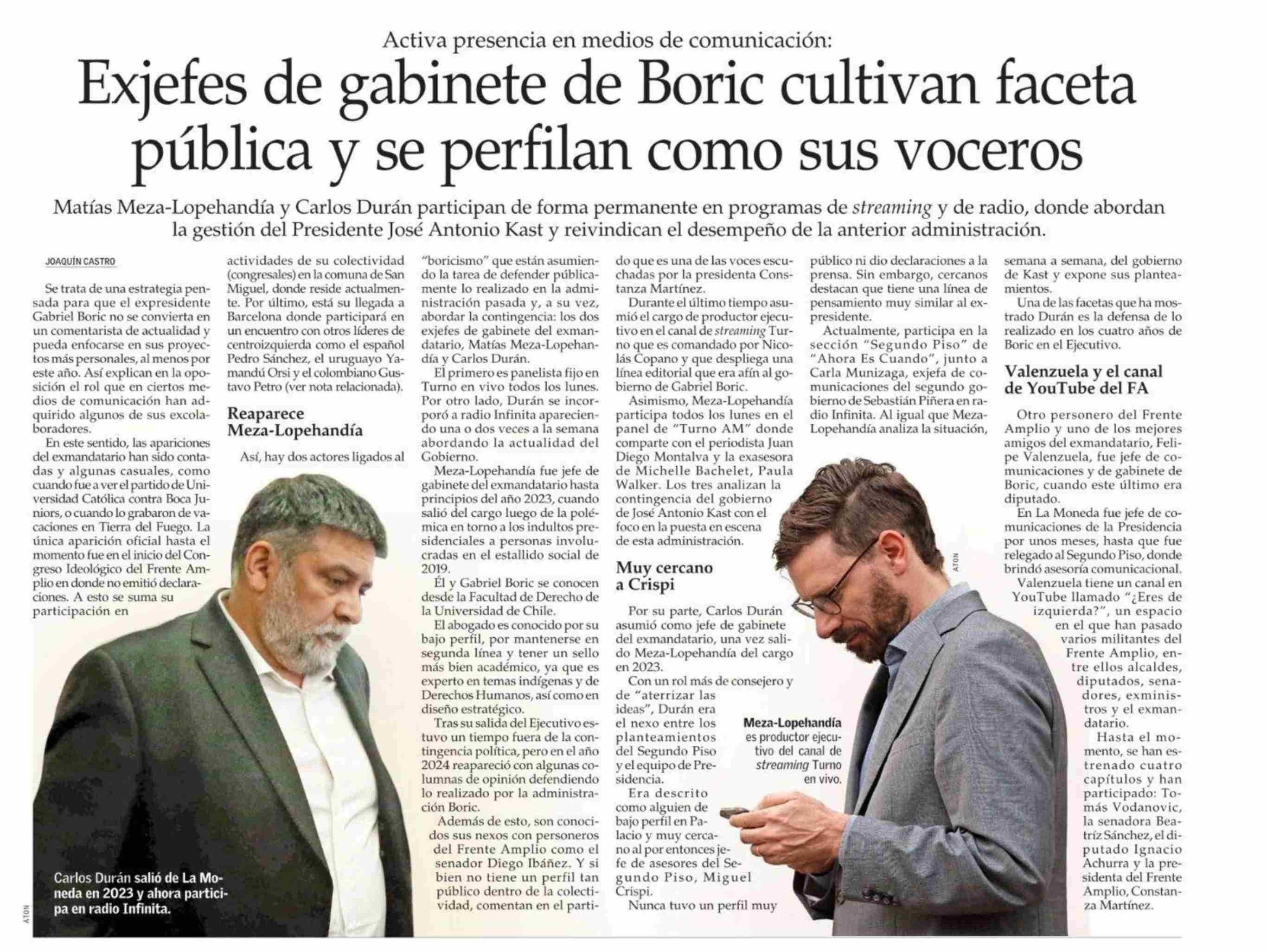 Título: Exjefes de gabinete de Boric cultivan faceta pública y se perfilan como sus voceros