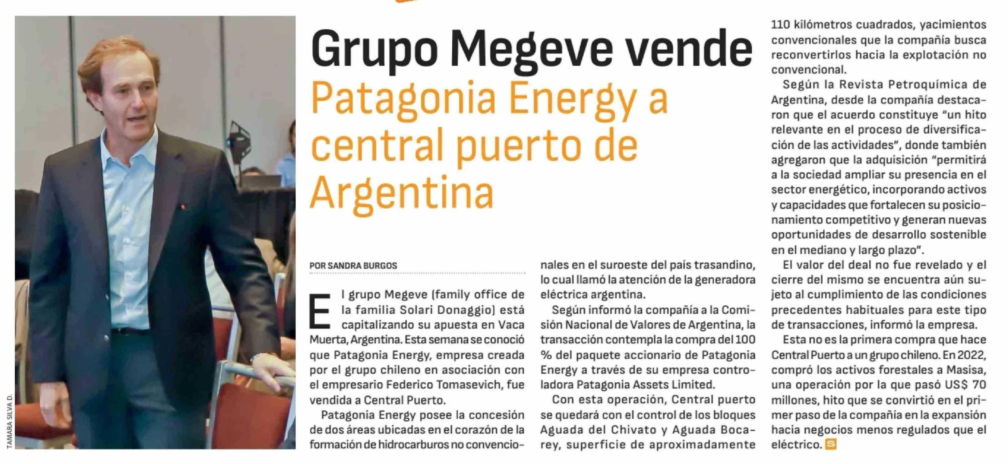 Grupo Megeve vende Patagonia Energy a central puerto de Argentina 18-04-2026 Diario Financiero |
