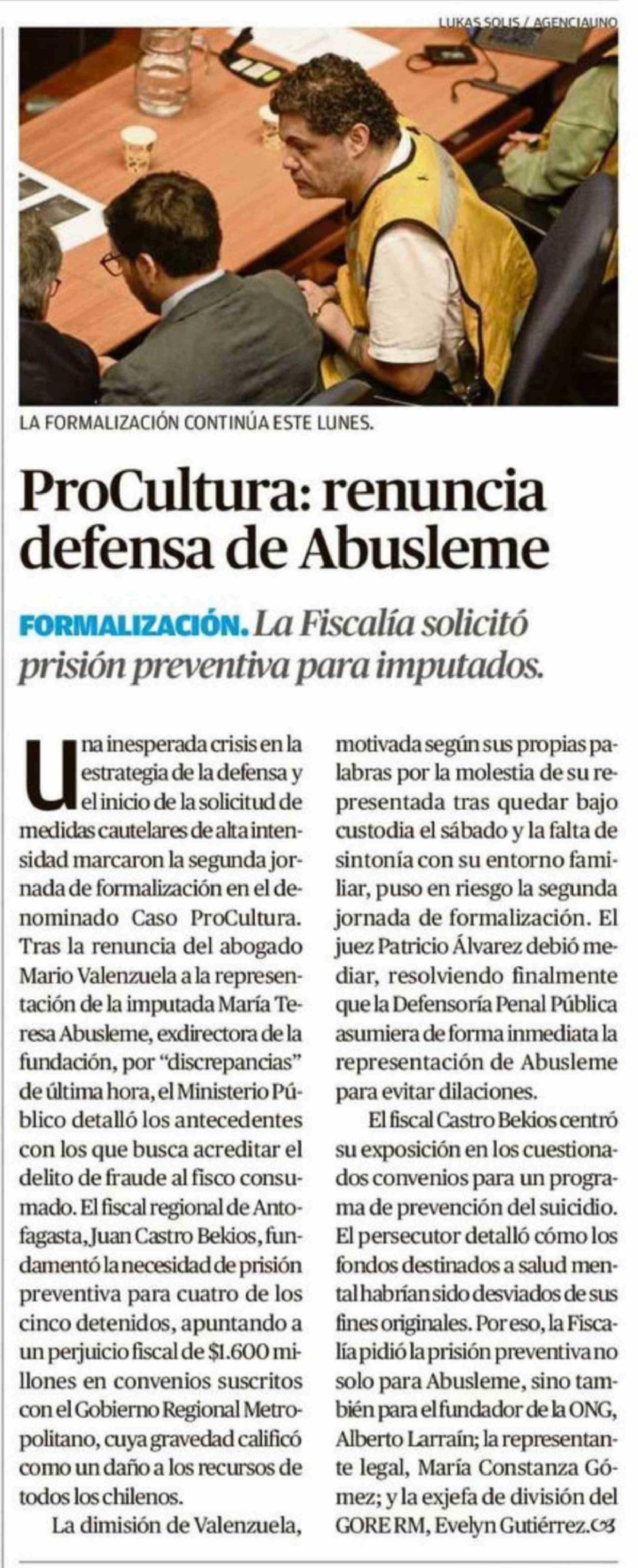ProCultura: renuncia defensa de Abusleme 02-02-2026 El Austral de Osorno |