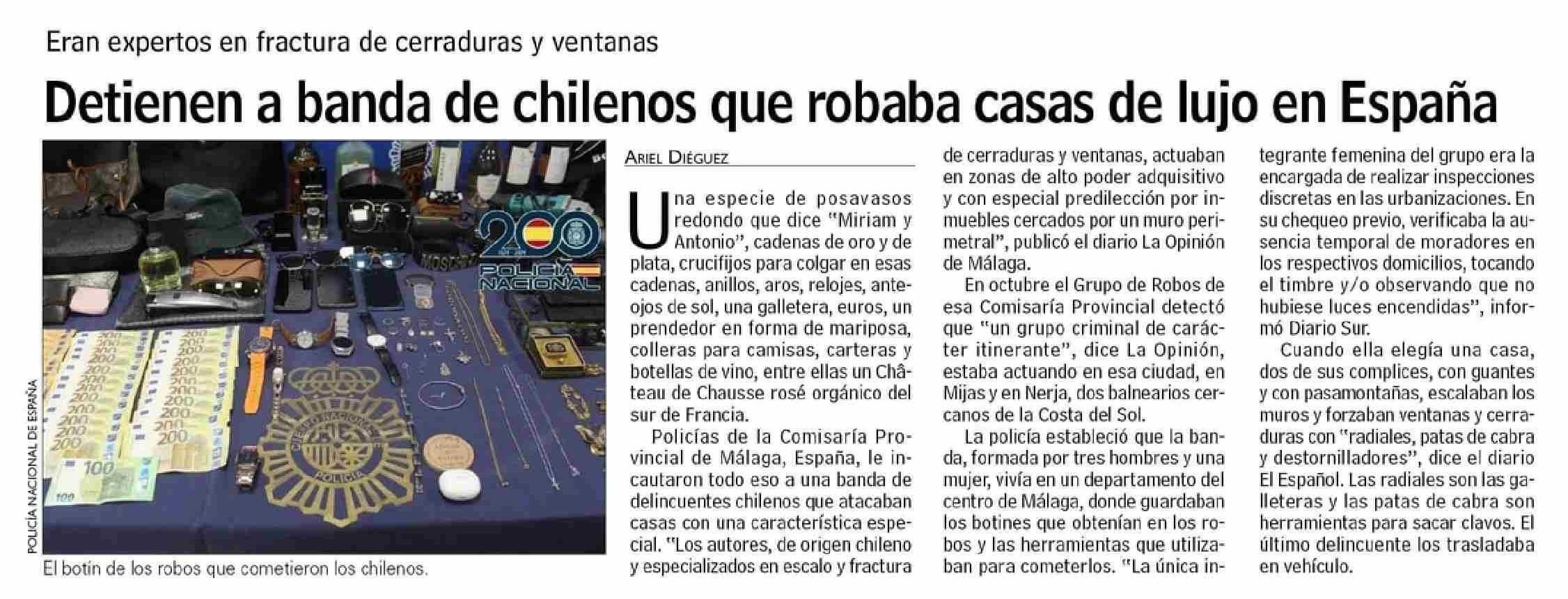 | Título: | Detienen a banda de chilenos que robaba casas de lujo en España |