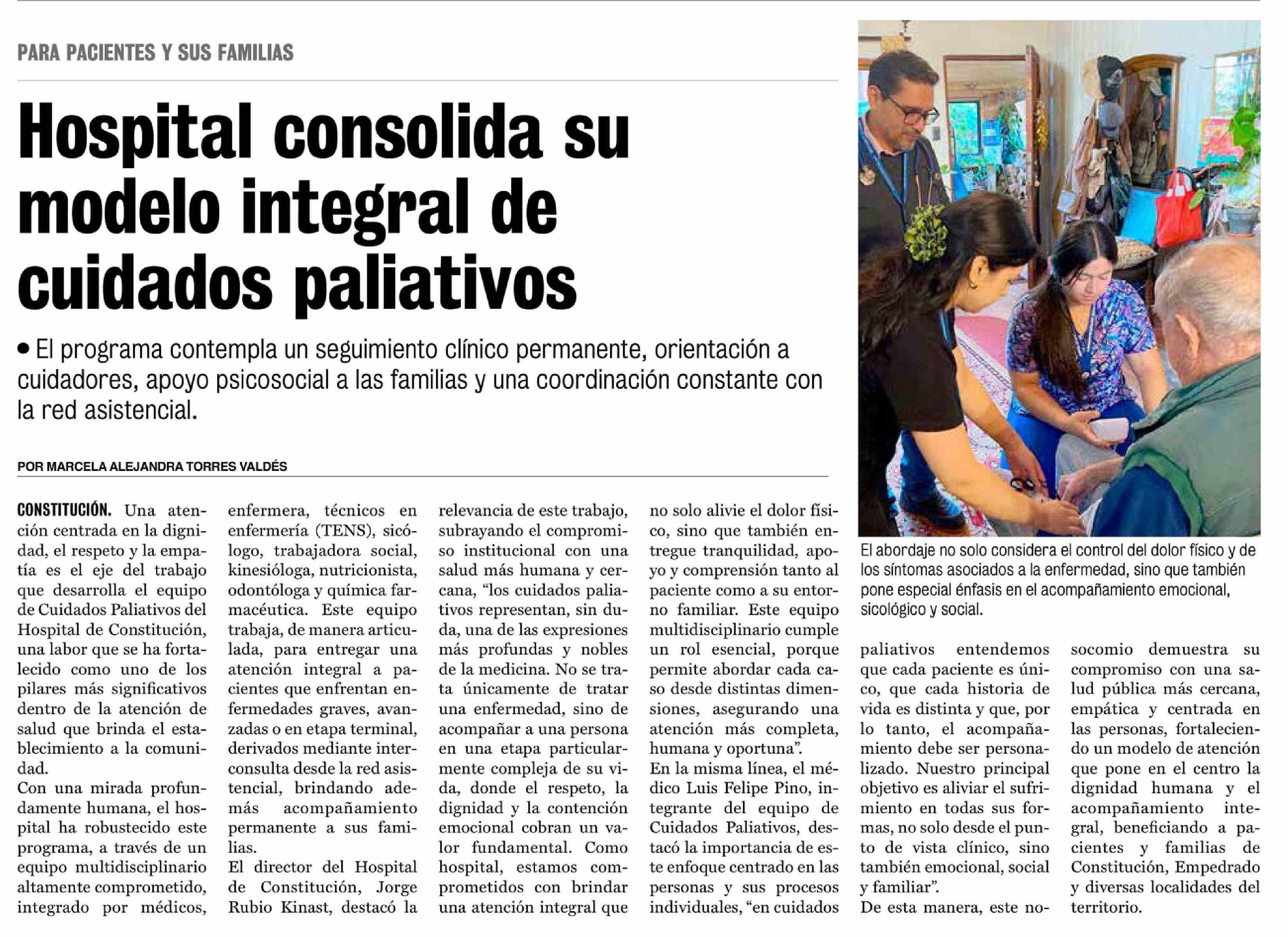 Hospital consolida su modelo integral de cuidados paliativos 14-04-2026 La Prensa de Curicó |