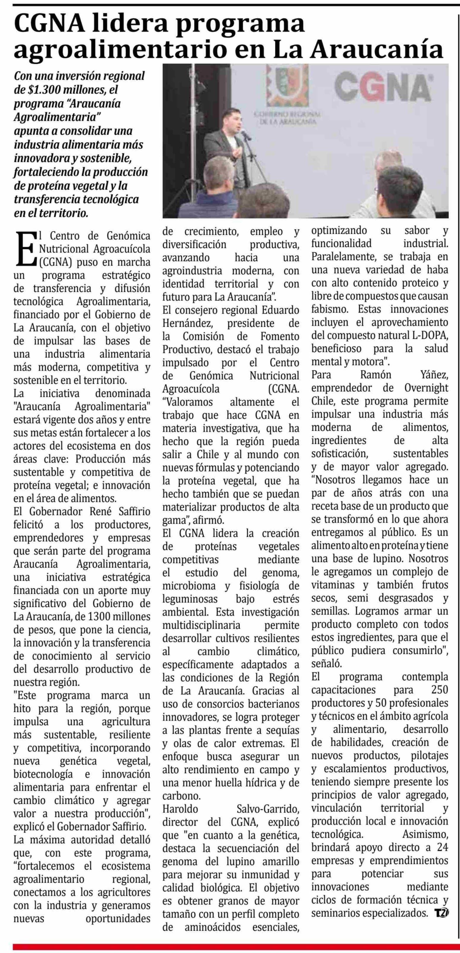 Título: CGNA lidera programa agroalimentario en La Araucanía