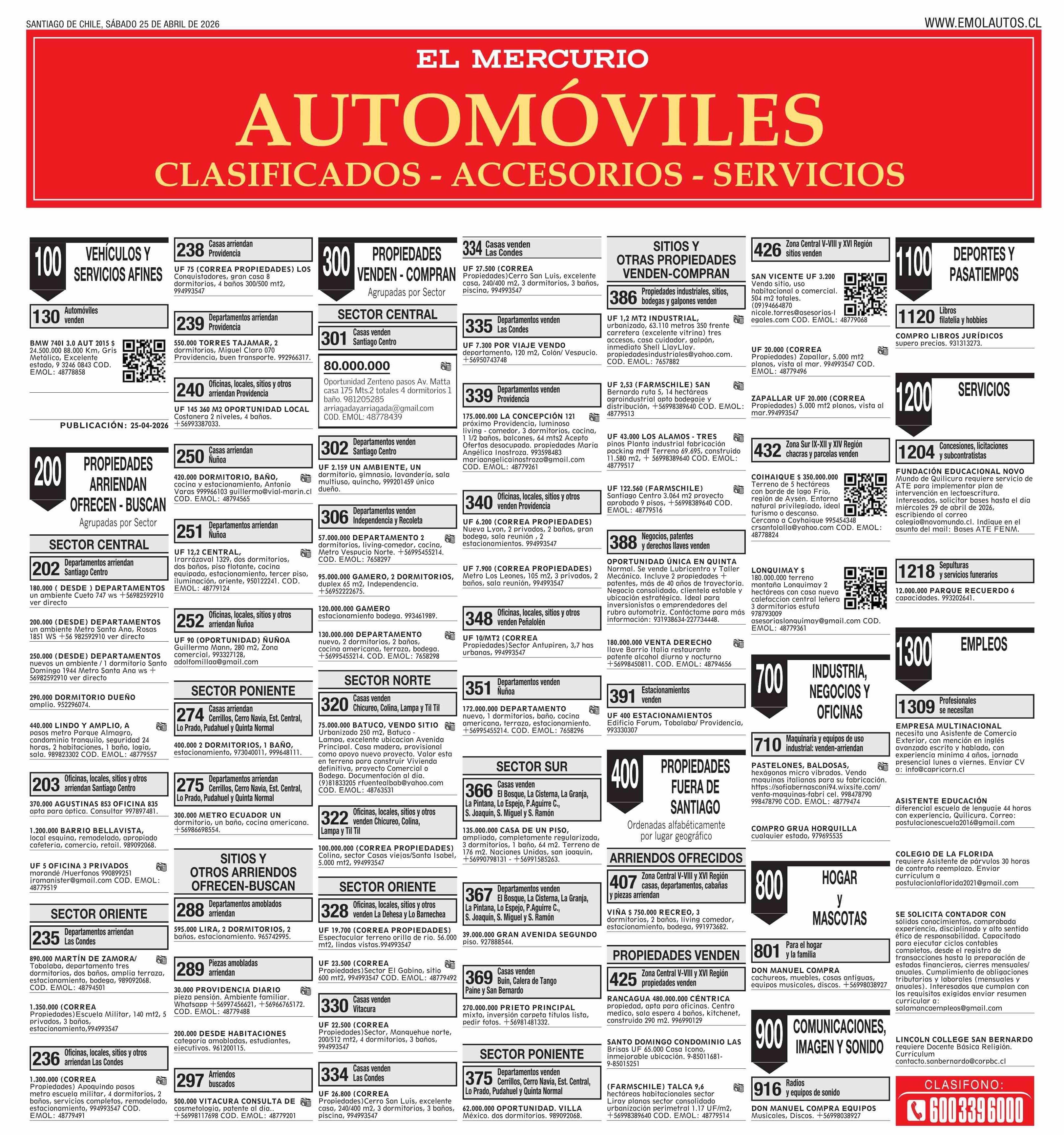 PORTADA EL MERCURIO (AUTOMÓVILES) CHILE 25-04-2026 El Mercurio |