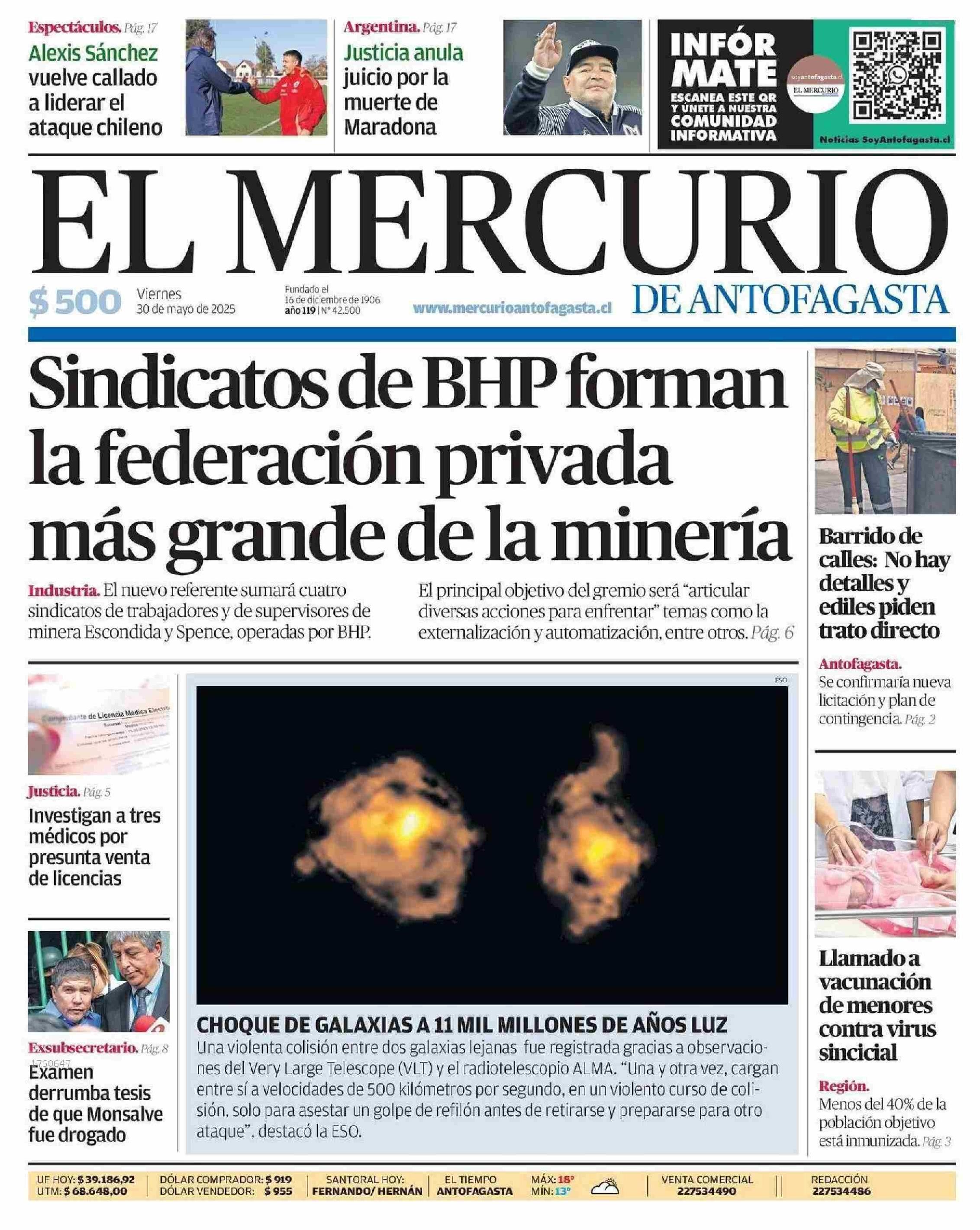PORTADA EL MERCURIO DE ANTOFAGASTA - CHILE 30-05-2025 El Mercurio de Antofagasta |