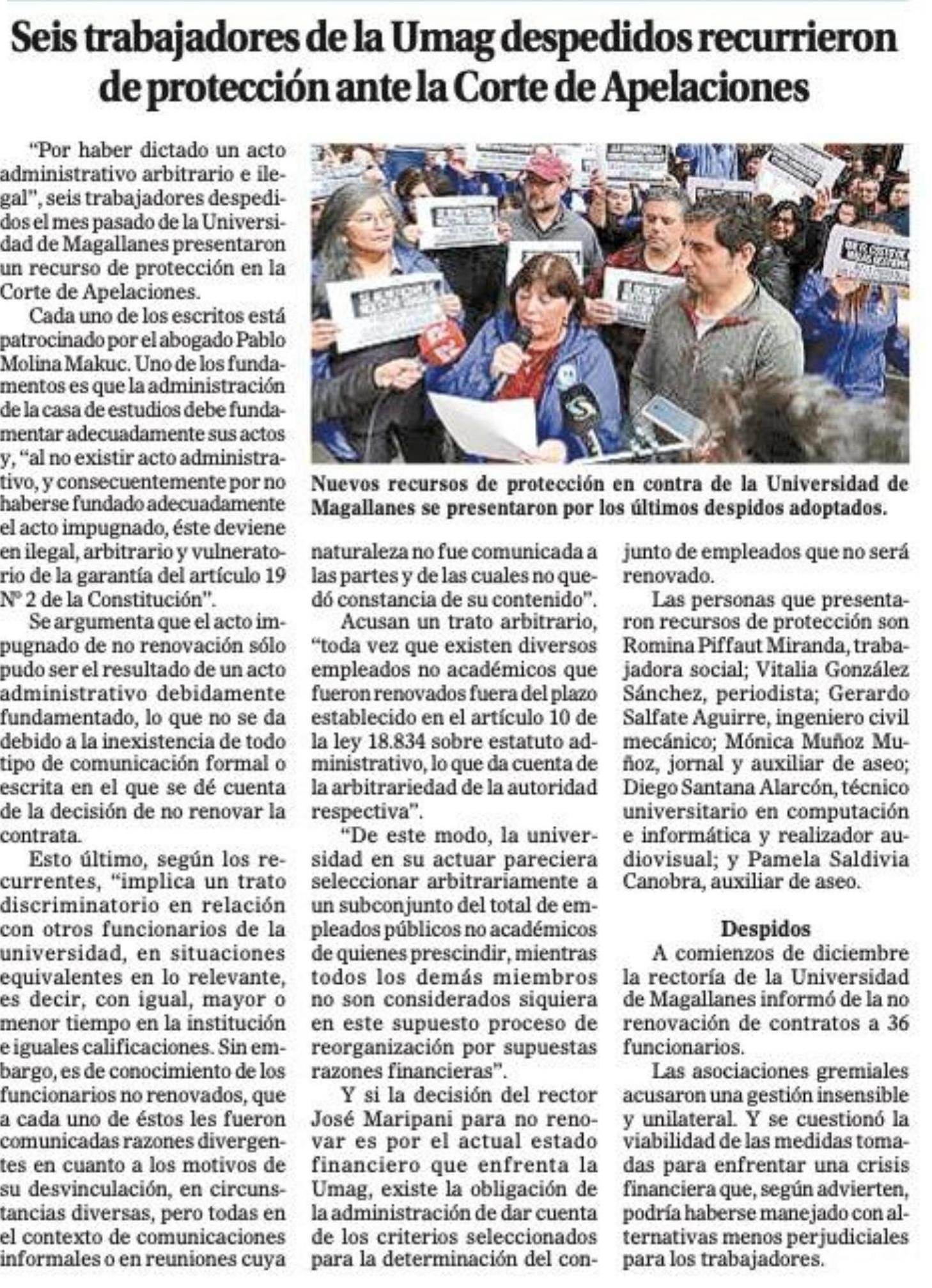 Seis trabajadores de la Umag despedidos recurrieron de protección ante la Corte de Apelaciones 05-01-2025 El Magallanes |